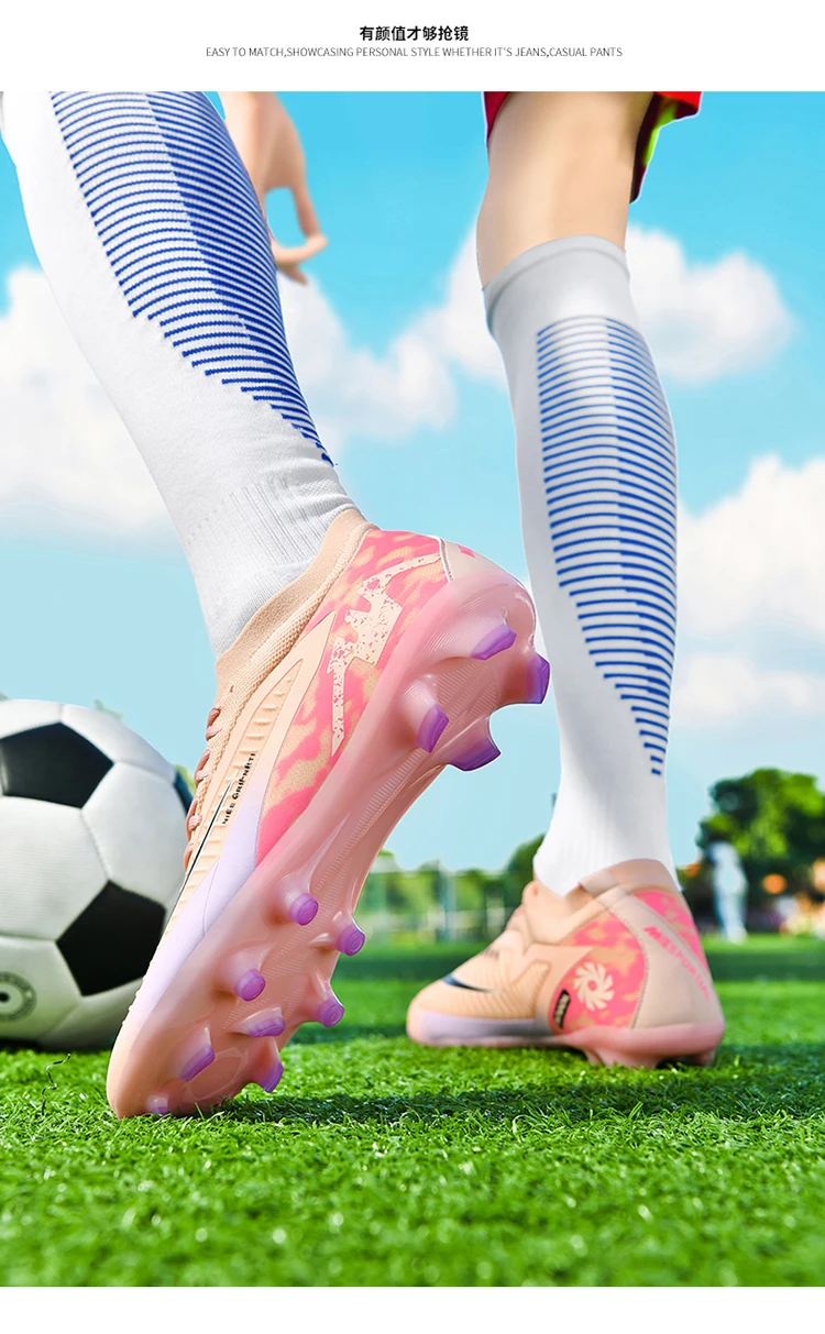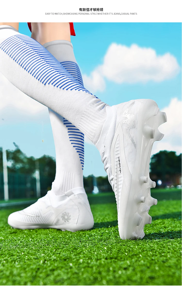 New Men's Soccer Shoes High-Top Soccer Cleats Outdoor Breathable Athletic Professional Spikes Youth Boys Football Shoes Unisex