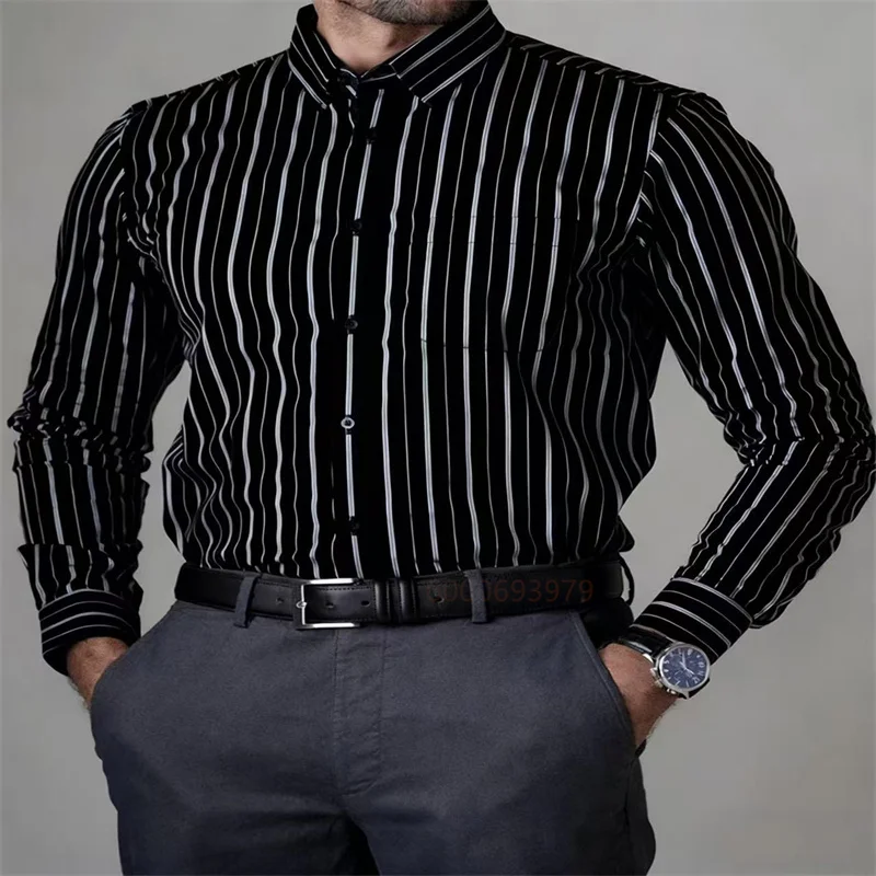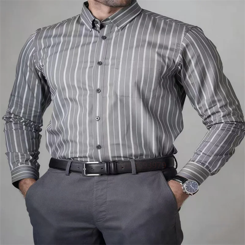 New Men's Striped Casual Shirt Fashion Durable Long Sleeve Business Formal Shirt Comfortable Soft Designer