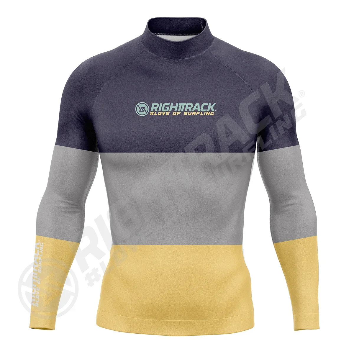 New Men's Surfing Shirt Three Contrasts Lycra Rashguard RIGHTTRACK Surf Sportswear Beach UV Protection Swimwear UPF50 Clothes