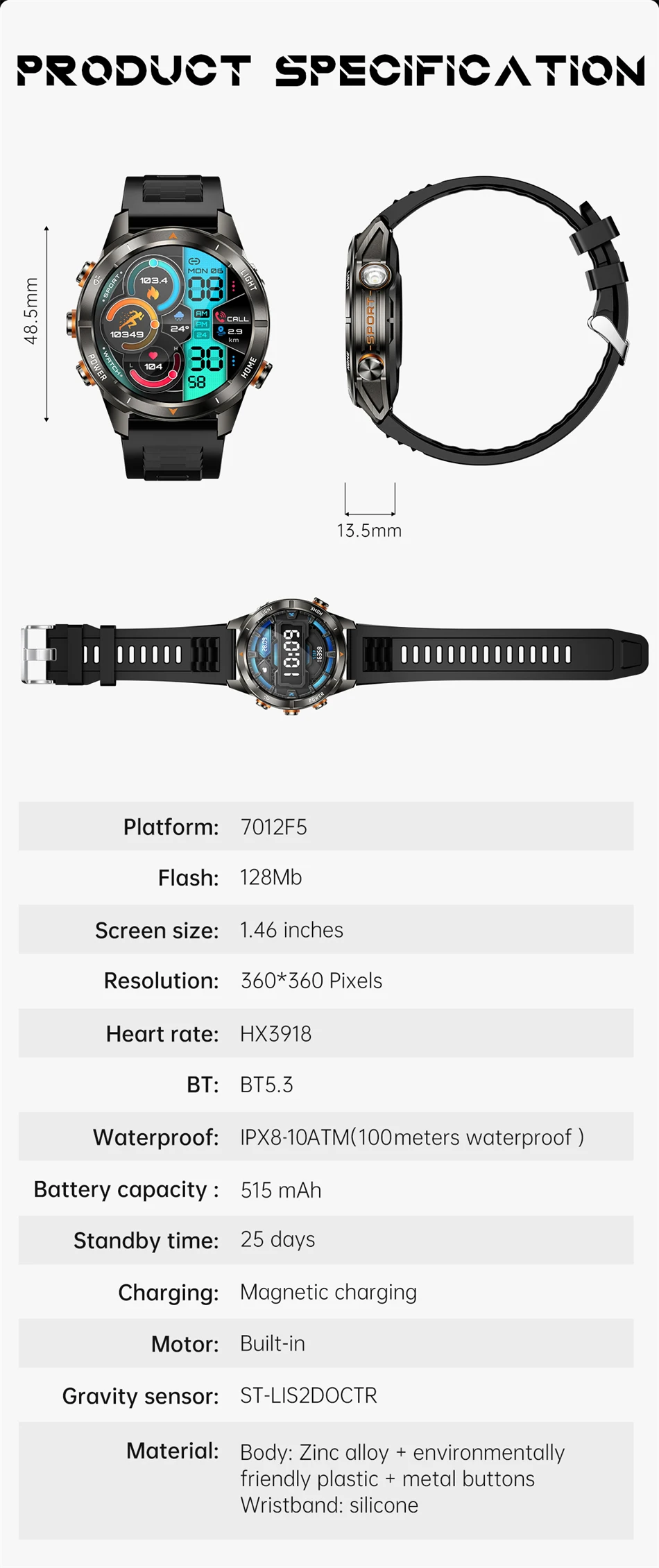 8.Military grade quality, 10ATM waterproof dustproof.