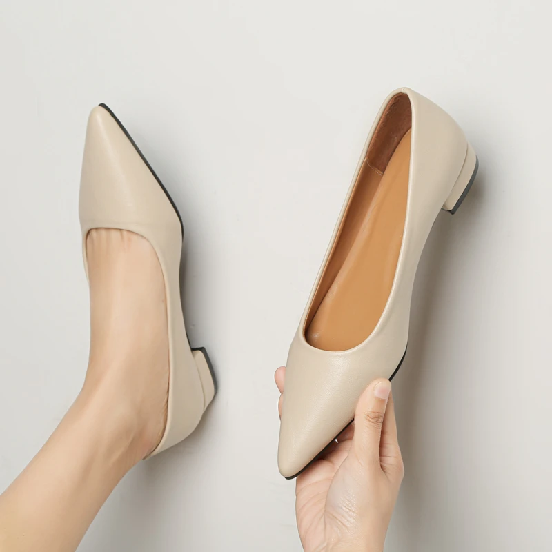 New Pointed Toe Shallow Mouth Square Heel Small Leather Shoes Women's Elegant Fashion High Heels Dress Shoes Zapatos Mujer