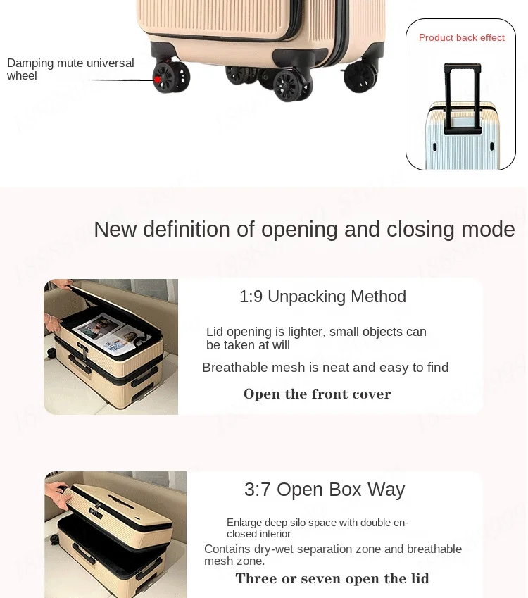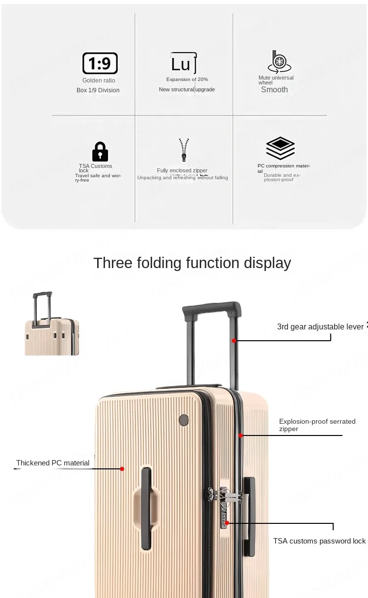 New Side-Opening Suitcase Large Capacity Luggage 5-Wheels Anti-Collapse Trolley Case 20-Inch Carry-On PC Travel Suitcase