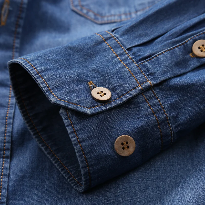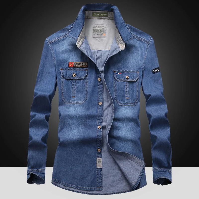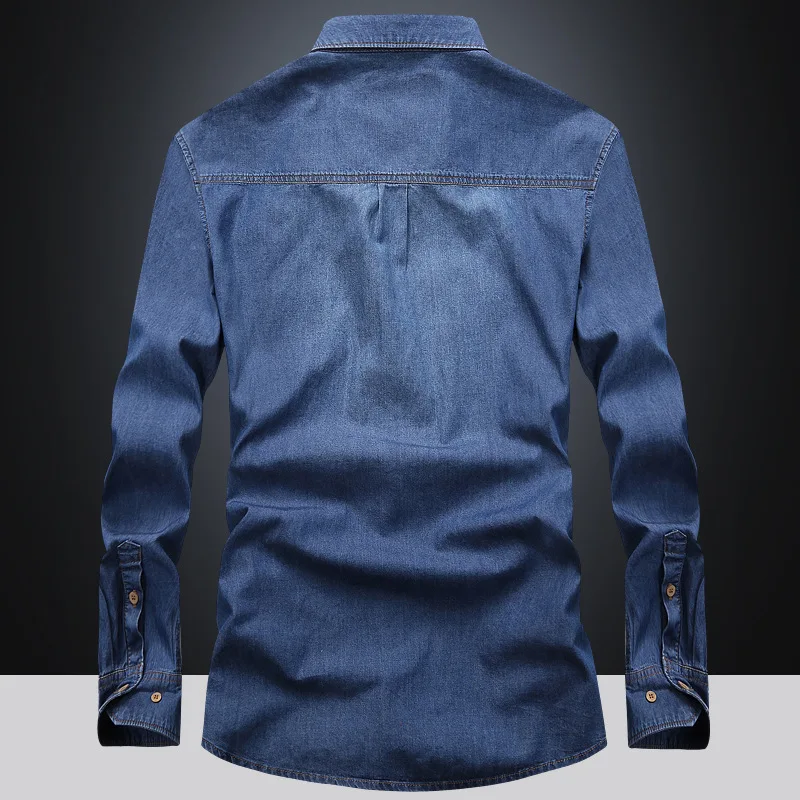 New Spring Man Long-sleeved Denim Shirts Men Outdoor Multi-pocket Tooling Shirts High Quality Male Cotton Casual Jeans Shirts 4