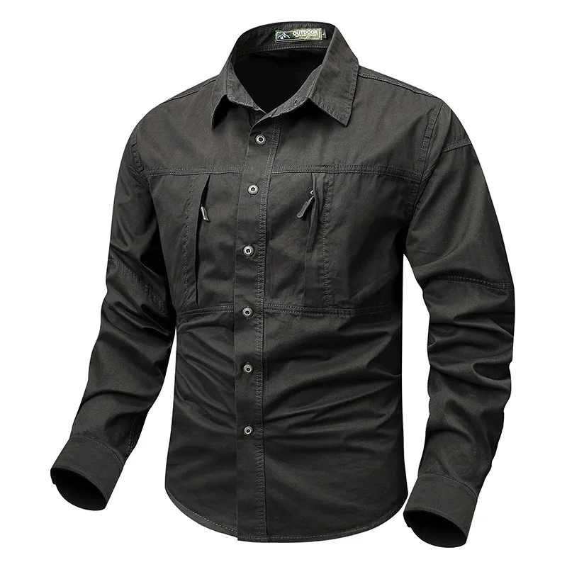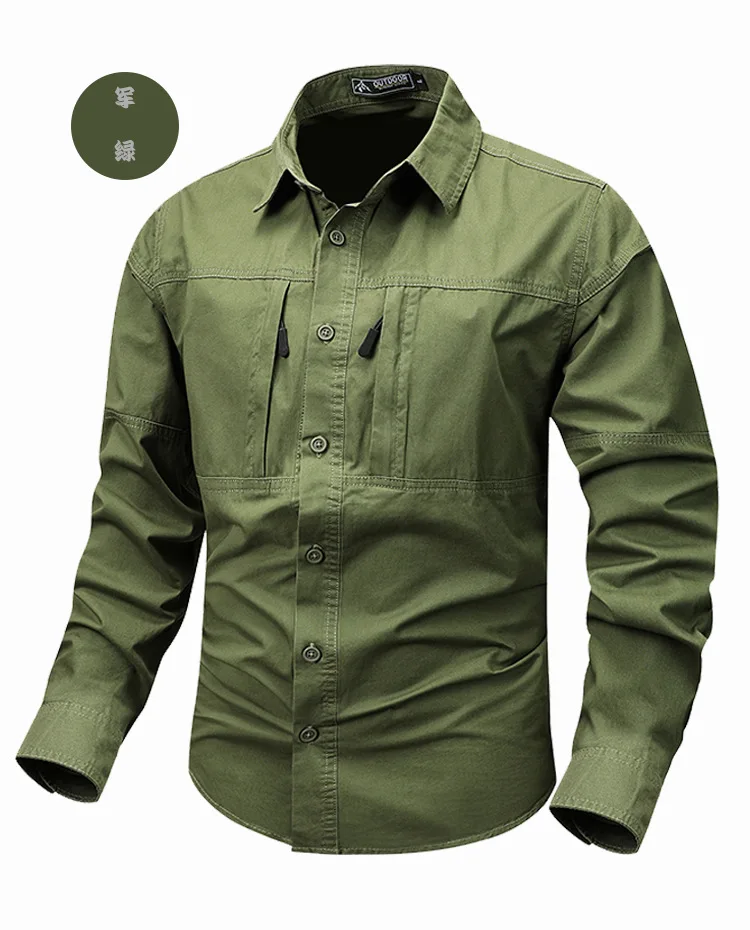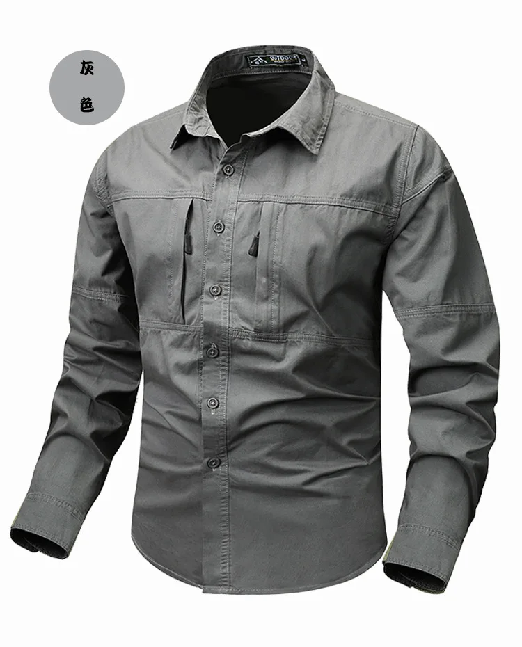 New Spring Men Long Sleeved Cargo Shirts High Quality Man Outdoor Multi Pockets Loose Tooling Shirts Male Casual Shirts Size 5X