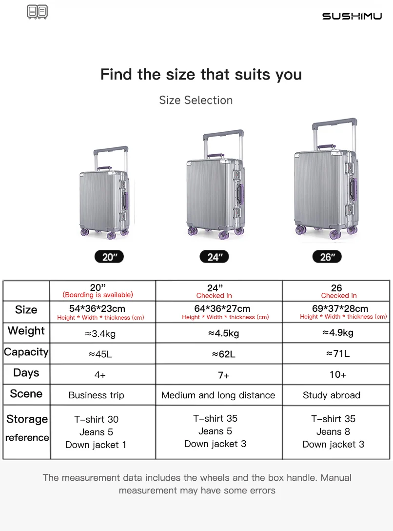 Dear friends, Nice to meet you. I am Sushimu, the owner of this store and the head of a luggage factory in China. We used to do OEM for internationally renowned brands, and this year we plan to sell ourselves, hoping to help you buy better products at lower prices. We only sell high-quality products, and we promise to provide you with free returns and exchanges for any quality issues. Thank you for your support and I hope to have the opportunity for you to travel to China. I am waiting for you in the beautiful city of Suzhou, China.