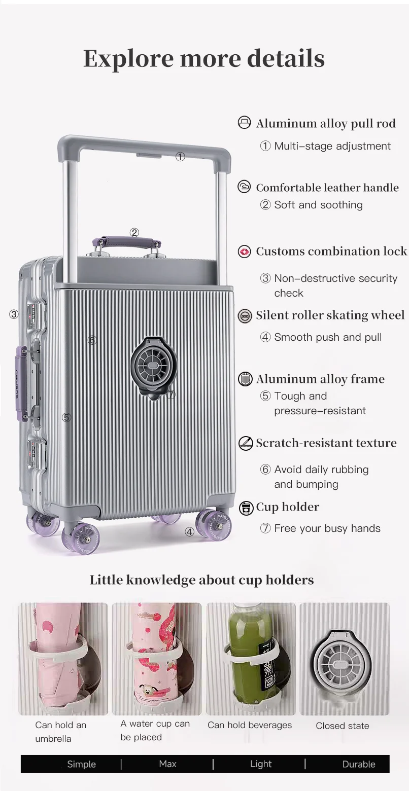 New Style Skate-Wheel Luggage, 24-inch Travel Suitcase, 20-inch Carry-On Suitcase, Premium Combination Lock Suitcase, Business T