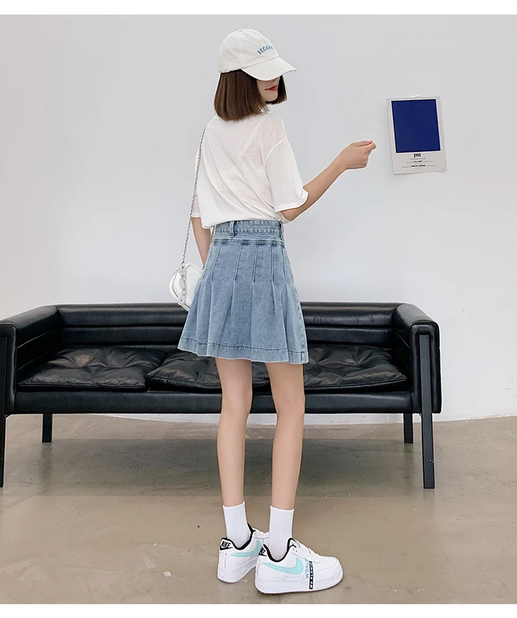 New Summer 2024 Plus Size Denim Skirt Women High Waist Pleated Large Size A Line Mini Jean Skirt Women Streetwear Saia Hot Sale
