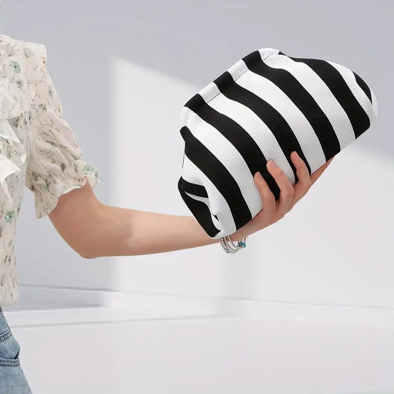 Description: Striped beach bag, fly weaving bag, girls commuting versatile striped bag, fly weaving clutch bag.