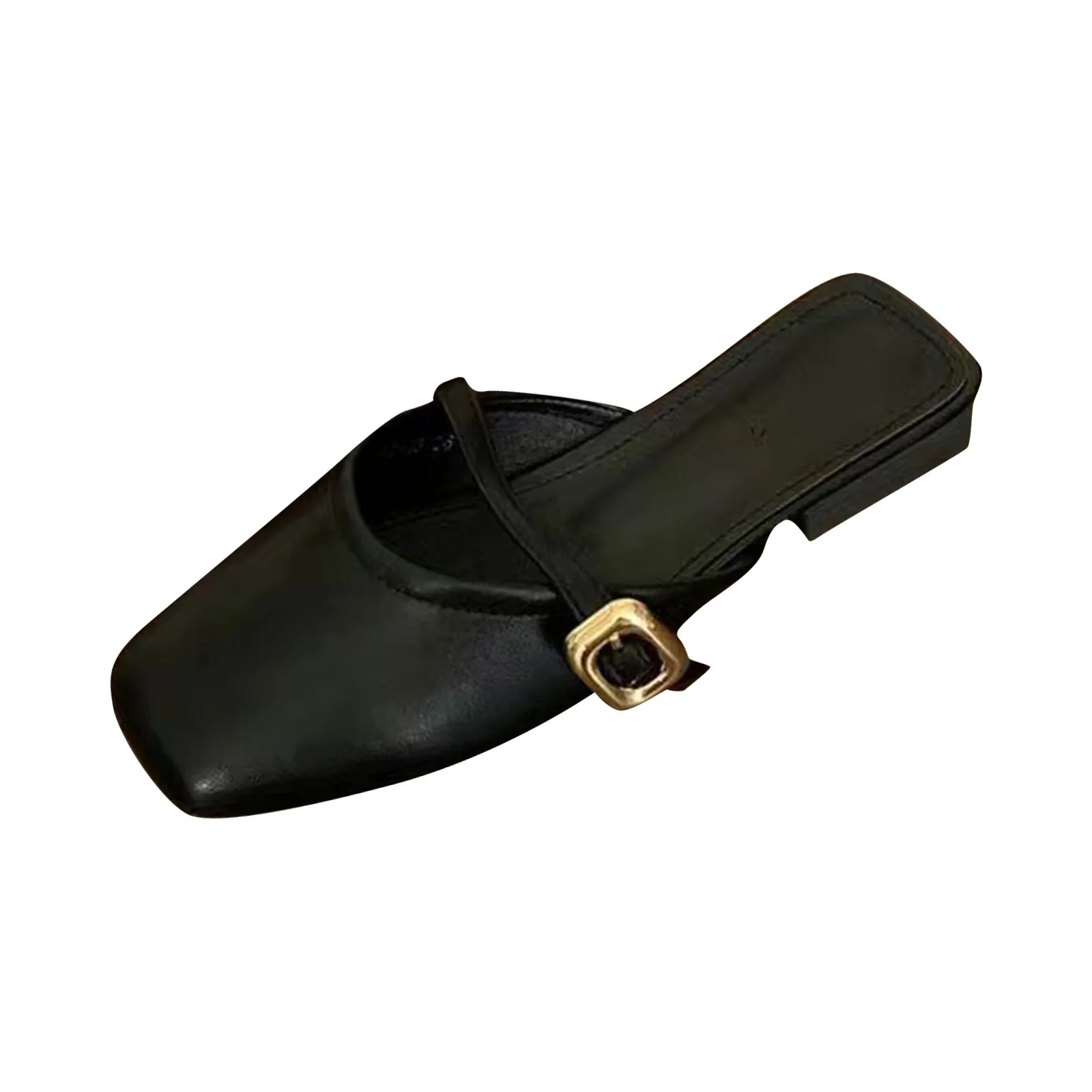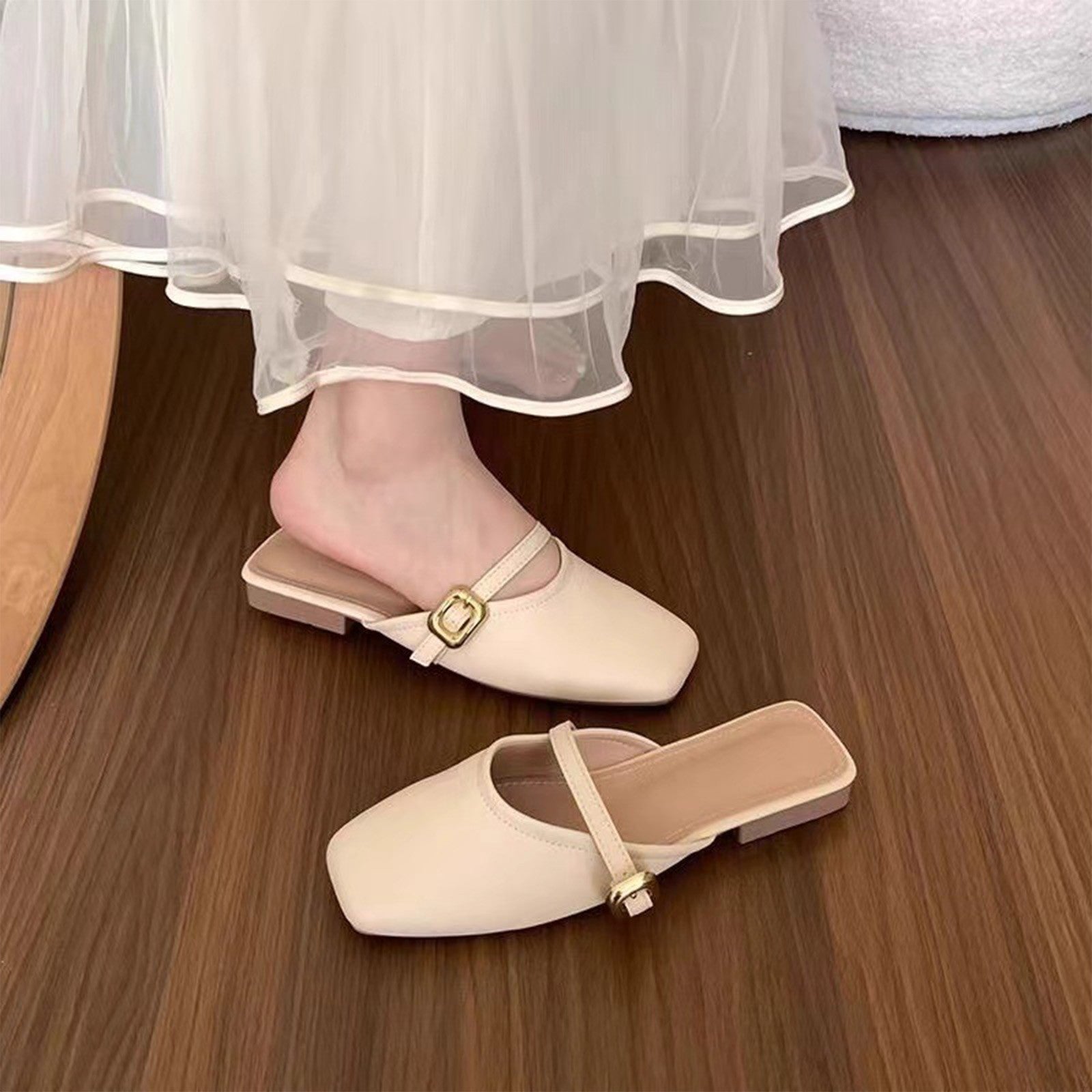 New Summer New French Gentle Baotou Half Slippers Women Casual Versatile Flat Bottom Shallow Mouth Single Shoes For Women