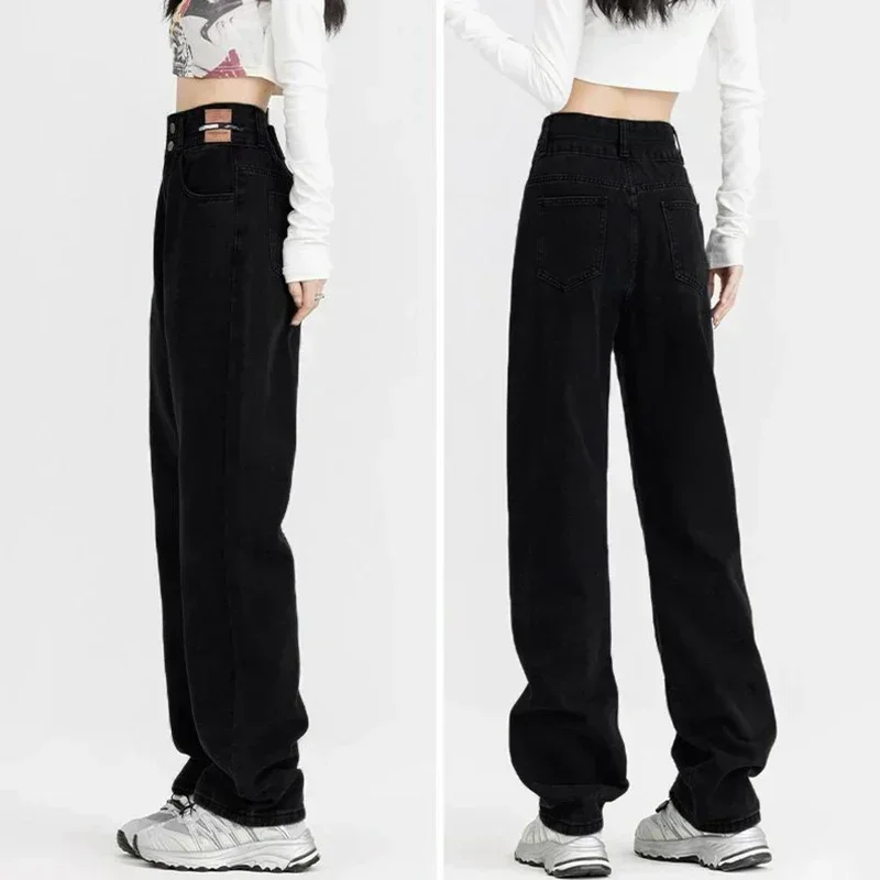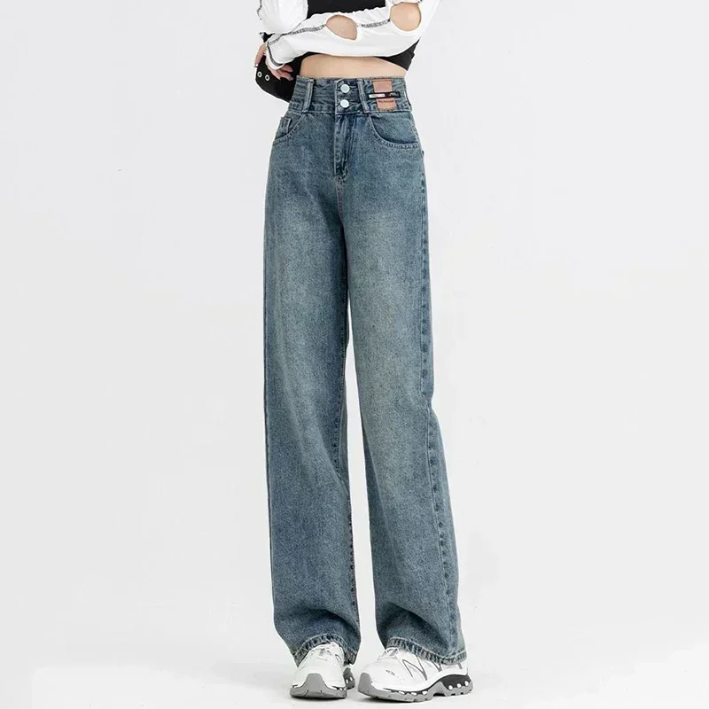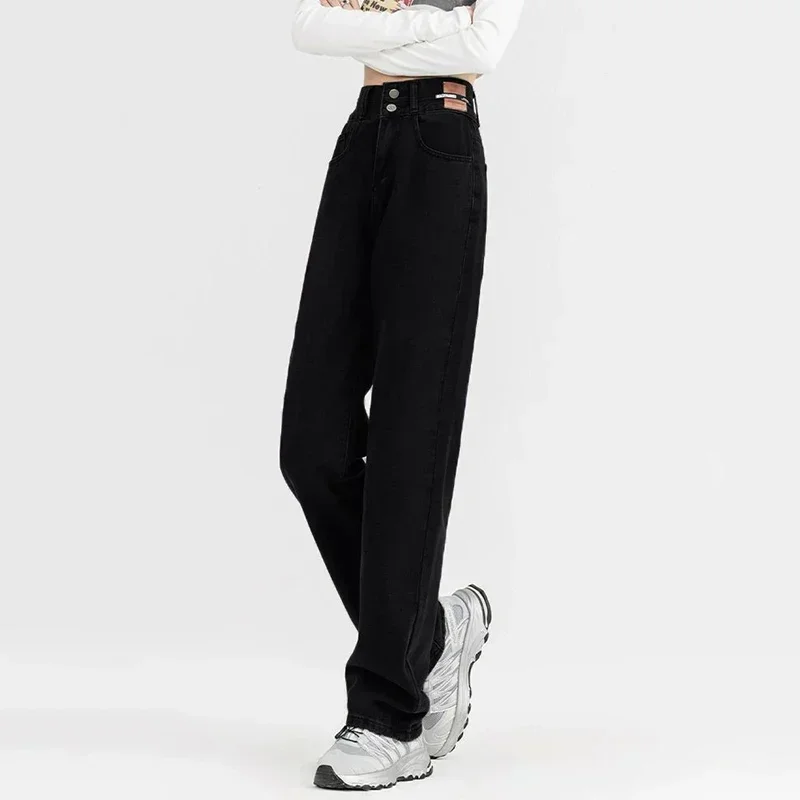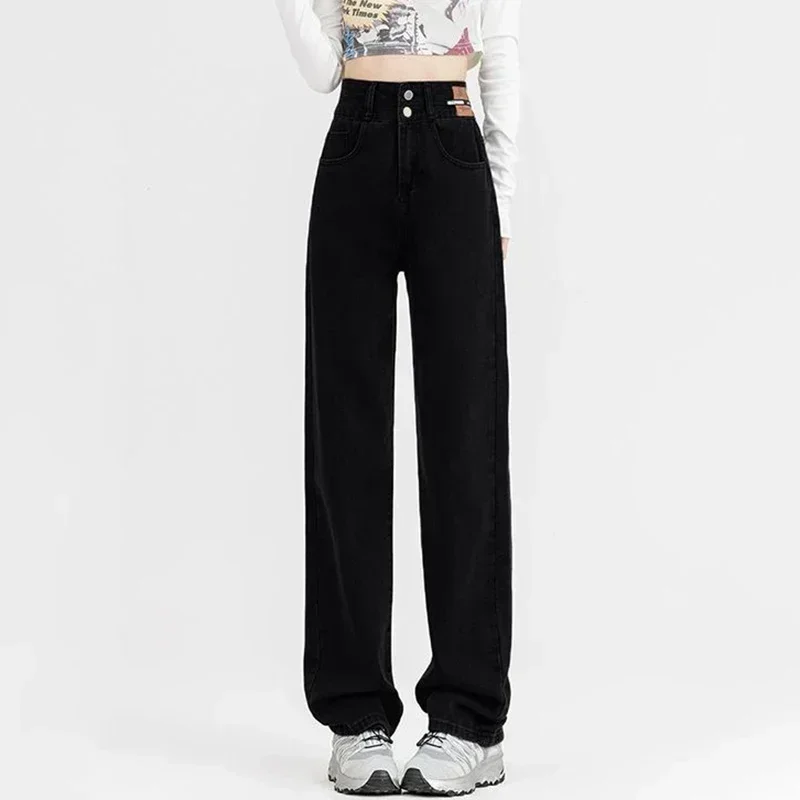 New Woman Korean Double Buckle Design Jeans Female Winter Snow Warm Thermal Plush Pants Girls Popular High Waist Denim Trousers