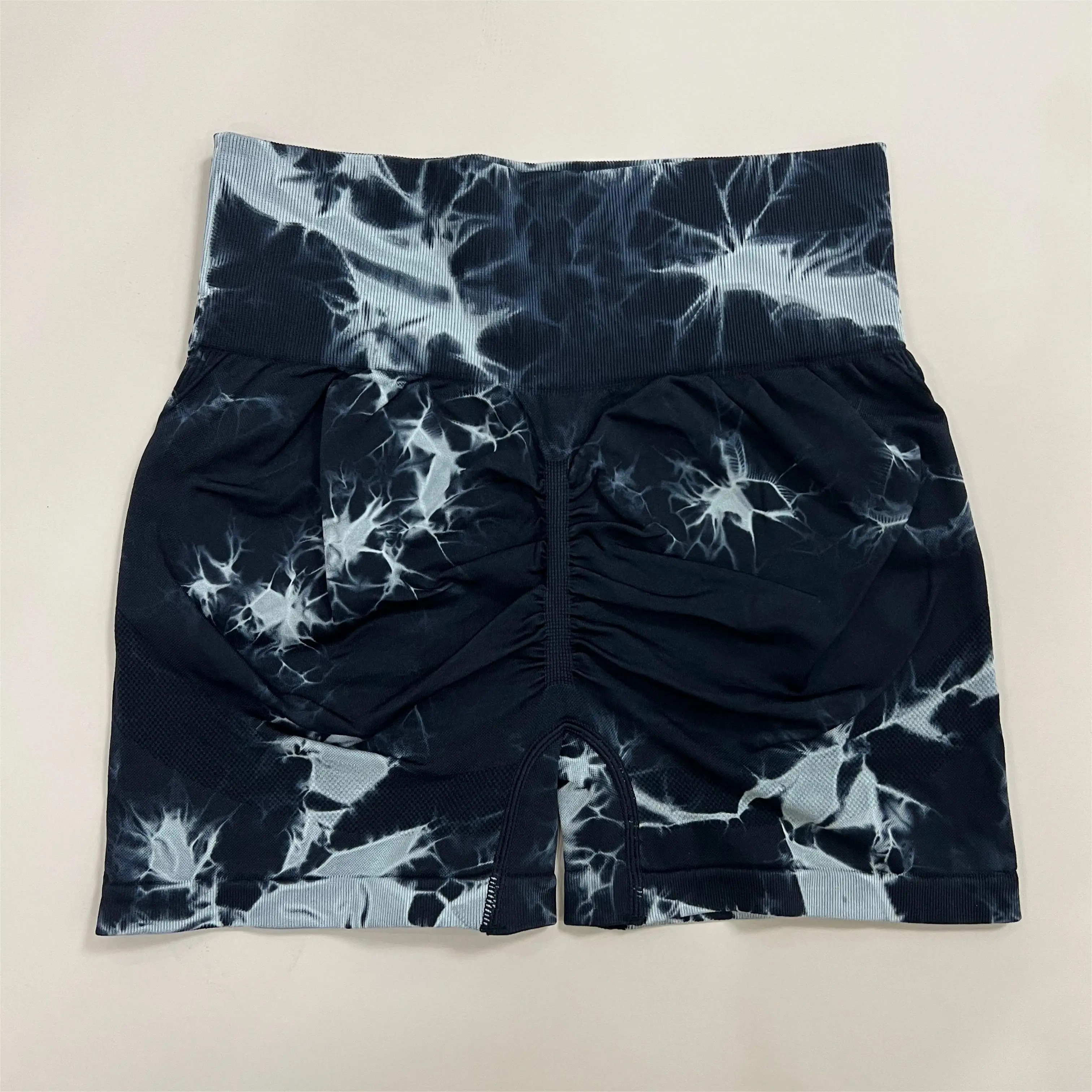 New Women Gym Tie Dye Scrunch Shorts Fitness Seamless Butt Lifting Sports Leggings Stretch Activewear Workout Running Tights