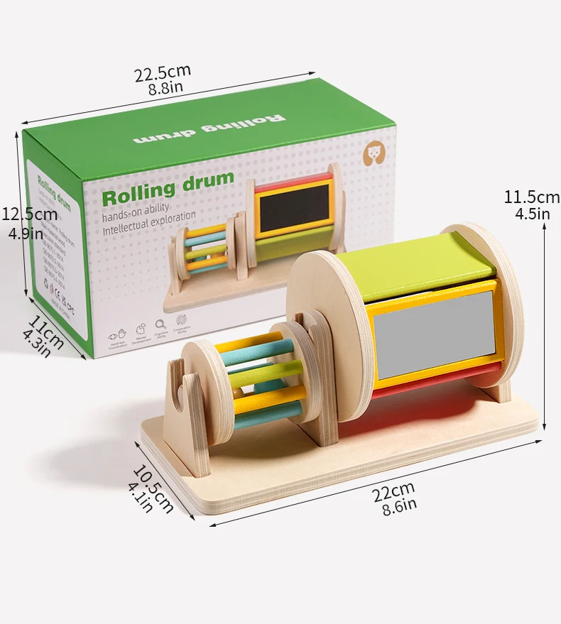Newest Wooden Drum Baby Toys Bright Color Sensory Montessori Drum Toys Hottest Kids Rolling Drum Toys Early Childhood Education