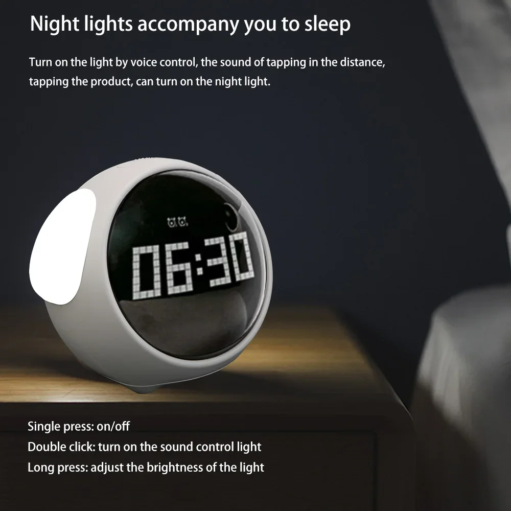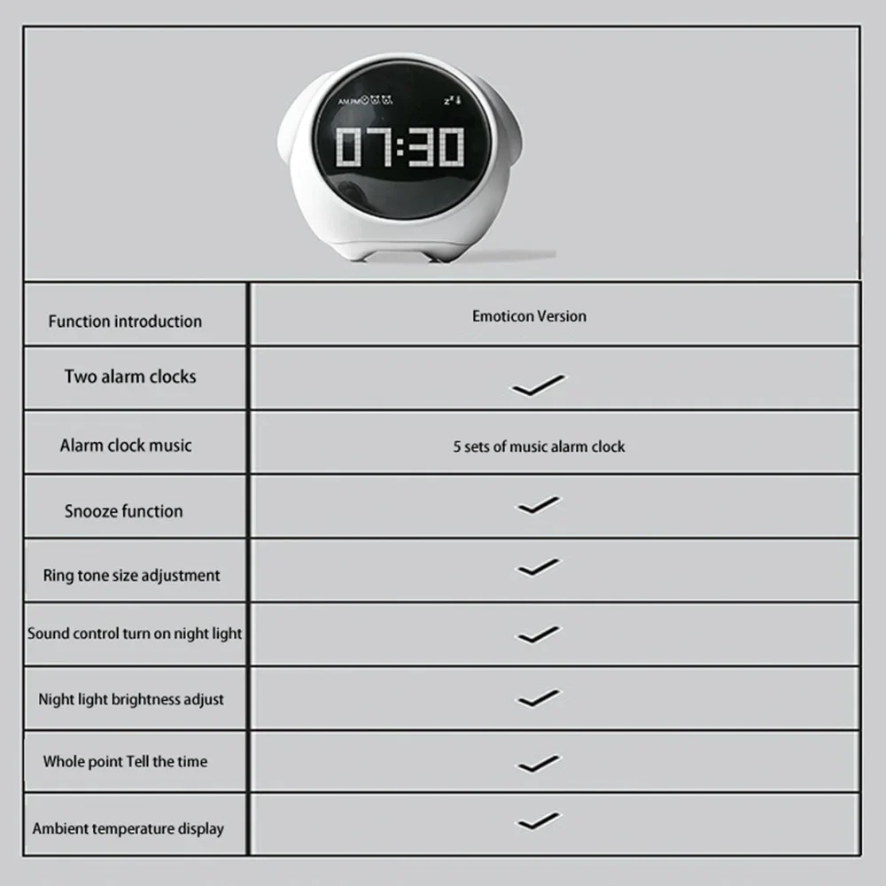 Night Light Cute Expression Alarm Clock Child Alarm Clock Voice Controlled Light Multifunctional For Home Thermometer