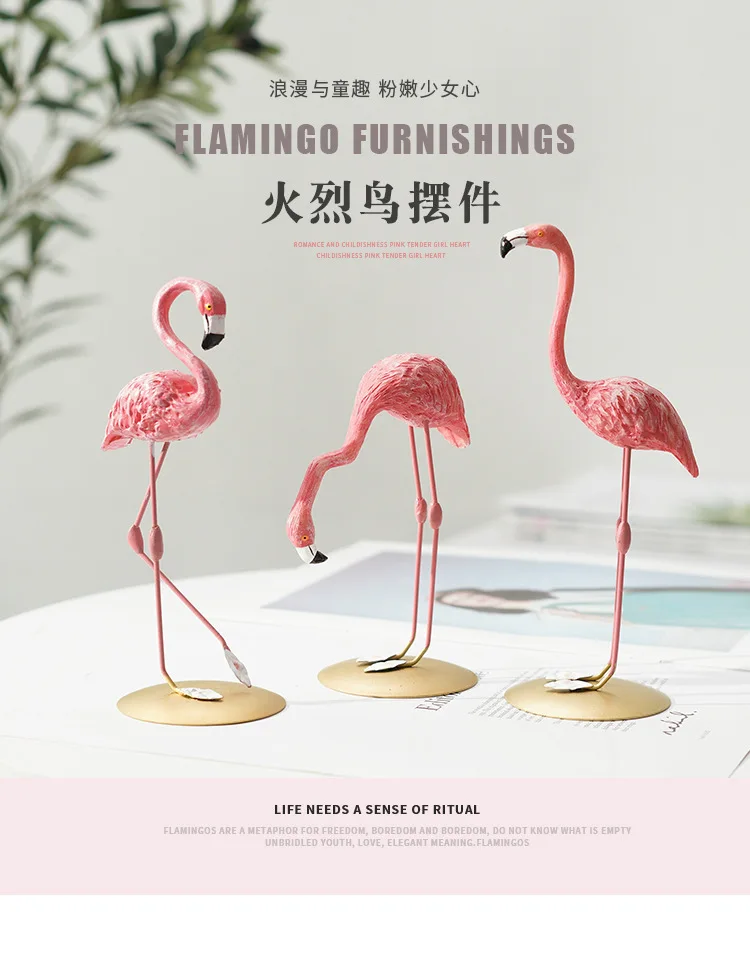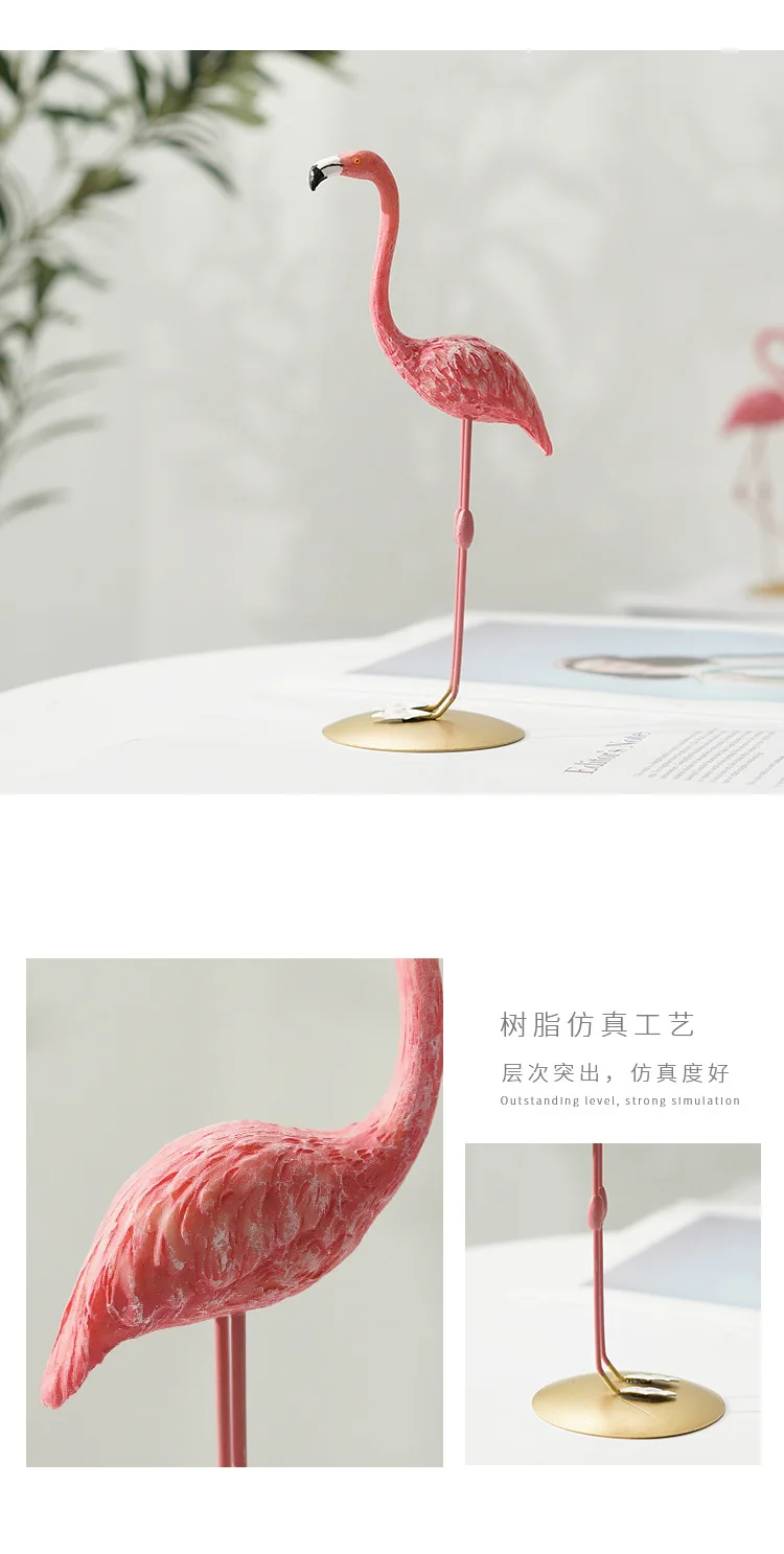 Nordic Home Decor Accessories Creative Resin Flamingo Figurines Pink Sculpture Animal Model Living Room Desktop Ornament Crafts