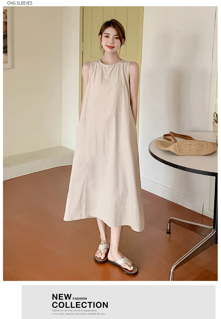 NYFS 2025 Summer New Korea Woman Dress Vestidos Robe Elbise Loose Plus Size Solid Sleeveless Backless Long Dress L-4XL