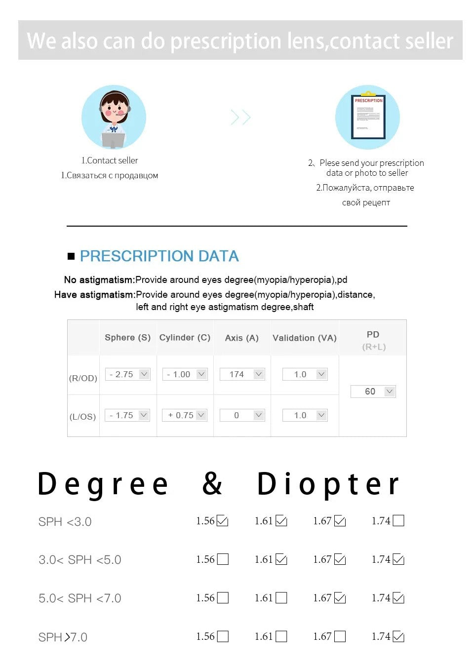 Prescription customization does not include high prescription, photochromic, multifocal Sunglasses