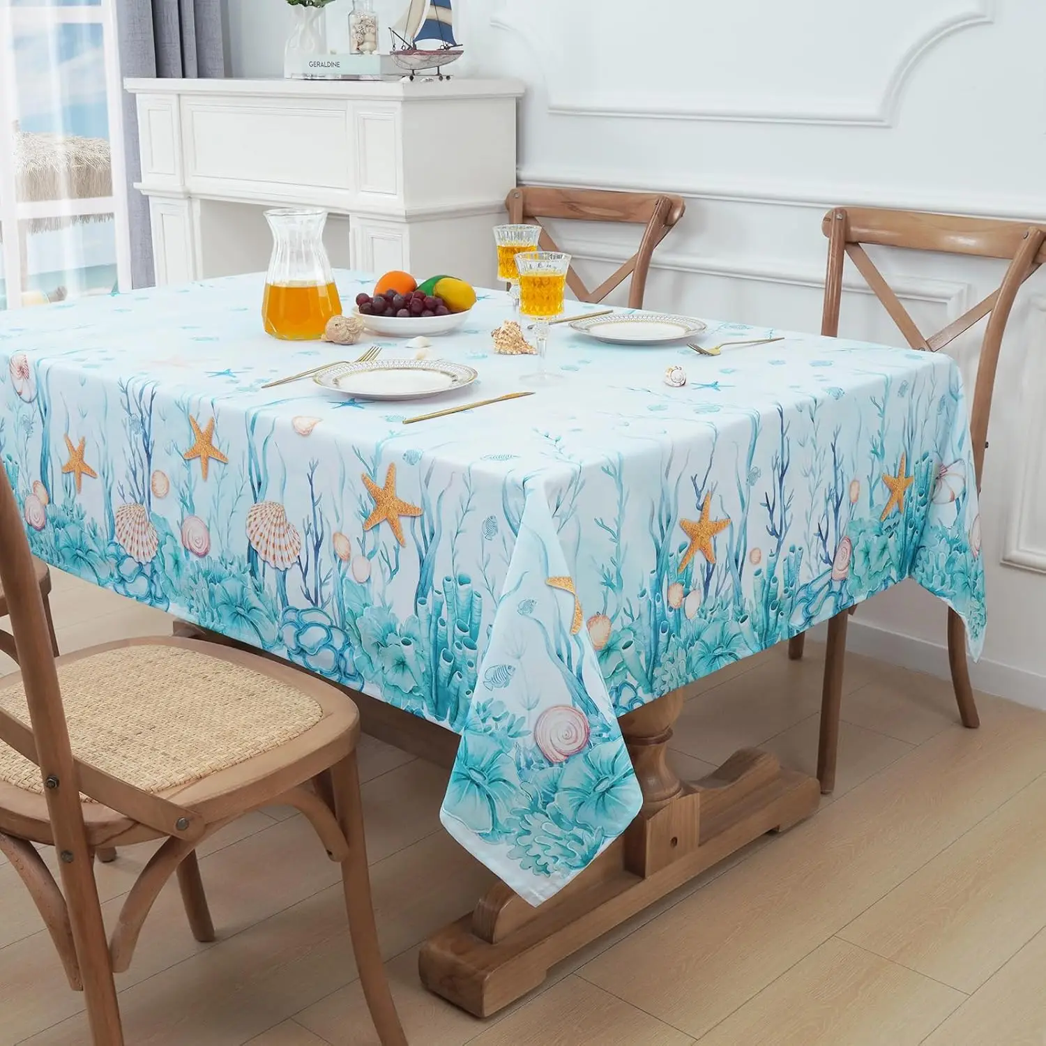 Ocean Nautical Coral Starfish Seashell Tablecloth Table Decor Waterproof Farmhouse Kitchen Dining Table Cloth Party Decoraitons