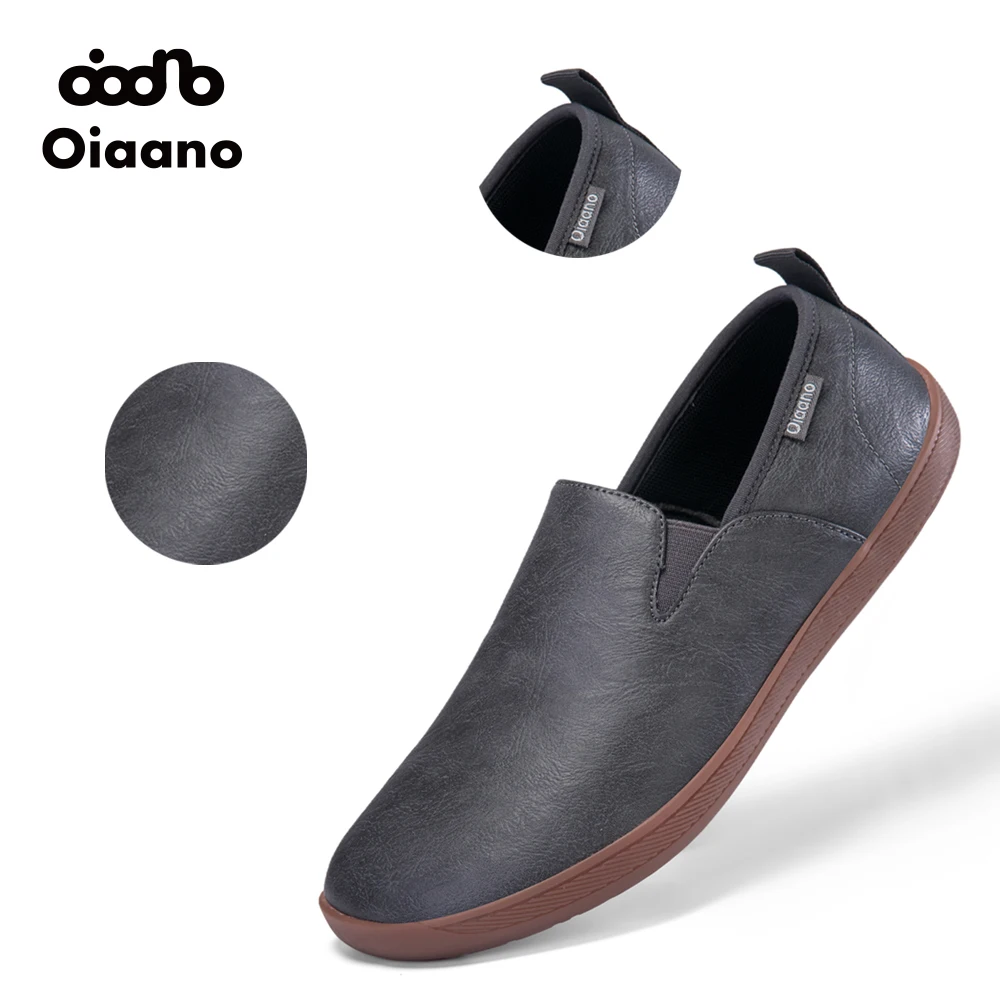 Oiaano Wide Toe Men Minimalist Shoes Comfortable Sneakers Leather Casual Shoes Black Slip On Leisure Loafers Drive Office