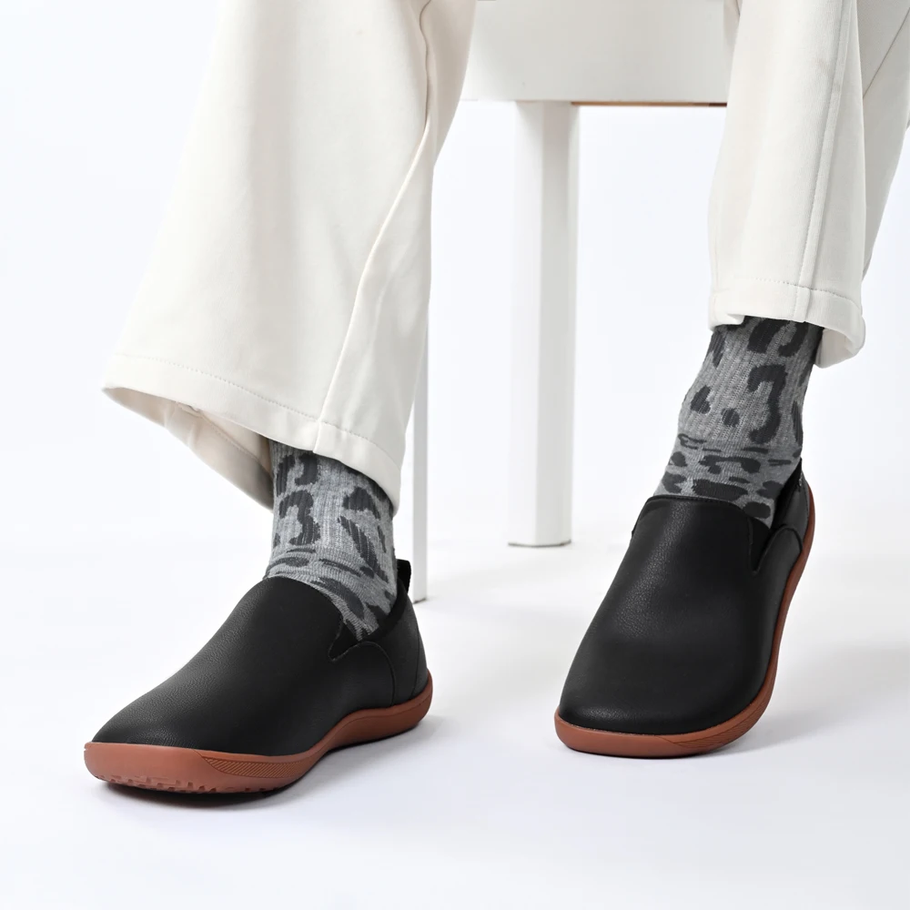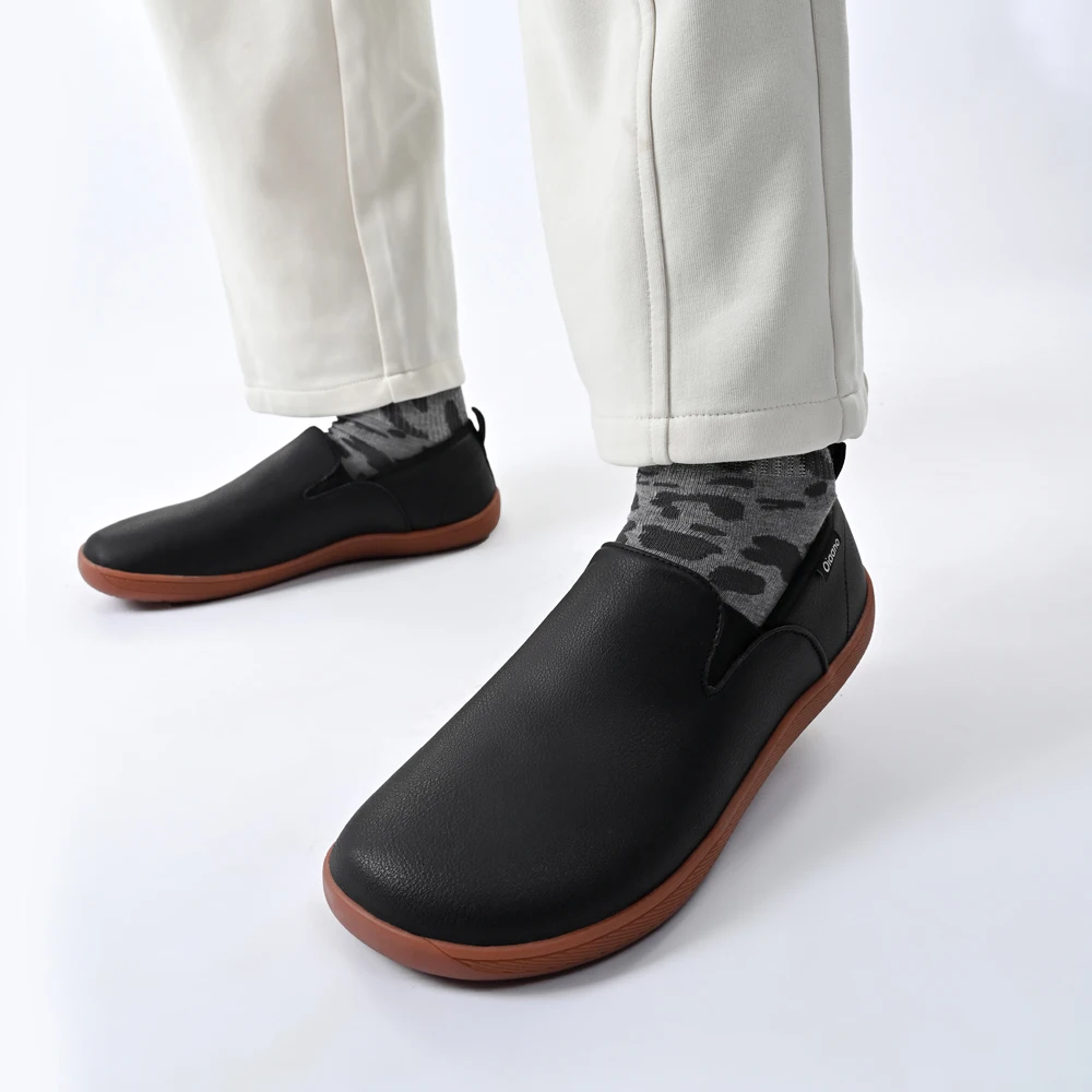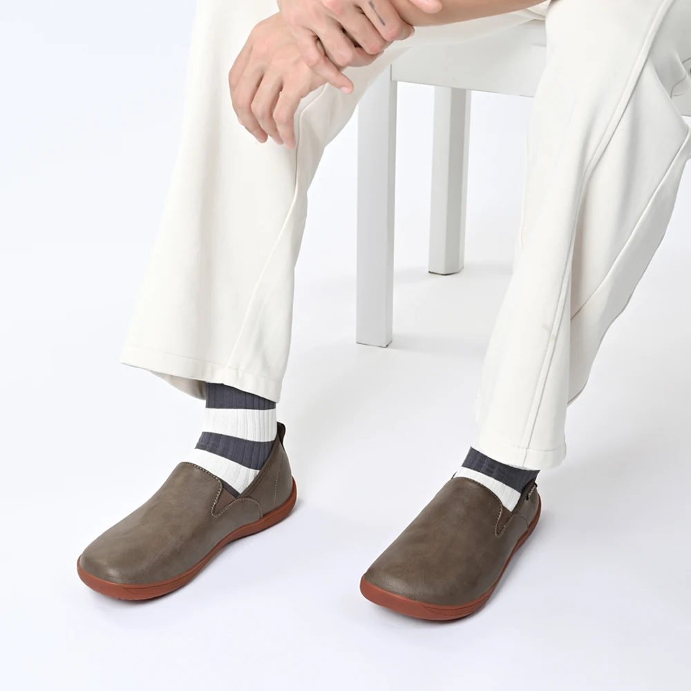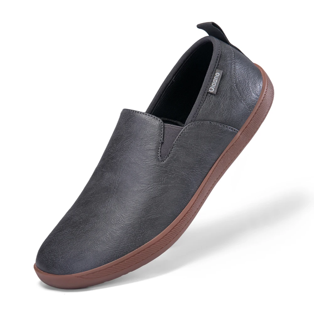 Oiaano Wide Toe Men Minimalist Shoes Comfortable Sneakers Leather Casual Shoes Black Slip On Leisure Loafers Drive Office
