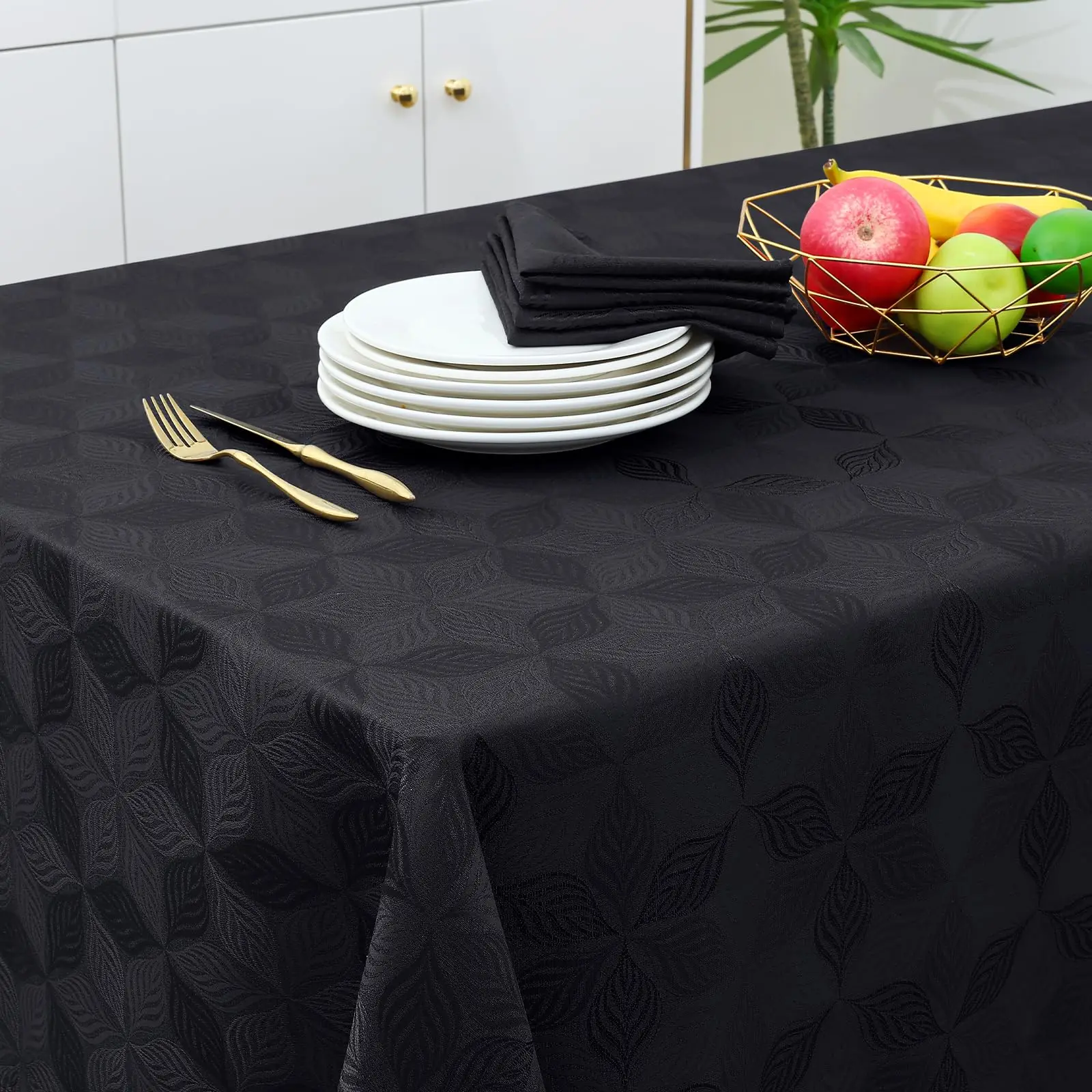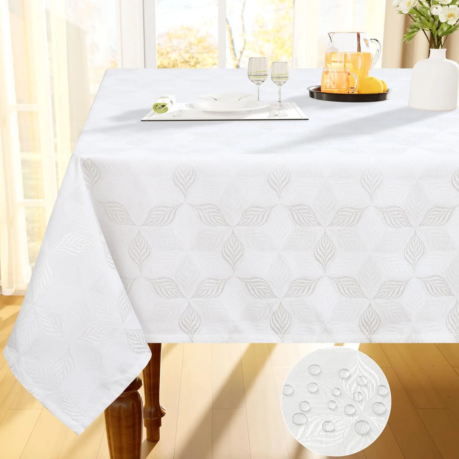 Olanly Rectangle Table Cloth For Home Jacquard Dyeing Tablecloth For Banquet Party Leaf Flower Diagram Polyester Tablecloth Grey