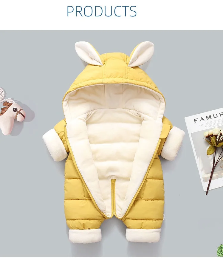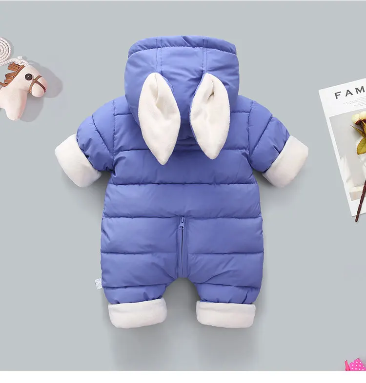 OLEKID 2025 Winter Baby Romper Plus Velvet Warm Baby Girl Snowsuit Cartoon Rabbit Baby Boys Jumpsuit Toddler Girl Overalls
