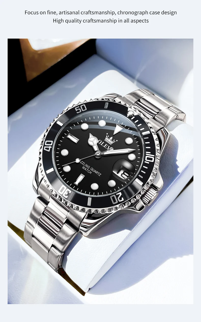 OLEVS Men's Watches Trend Luxury Fine Steel Strap Big Date Original Brand Quartz Wristwatch for Man Waterproof Luminous 5885 New
