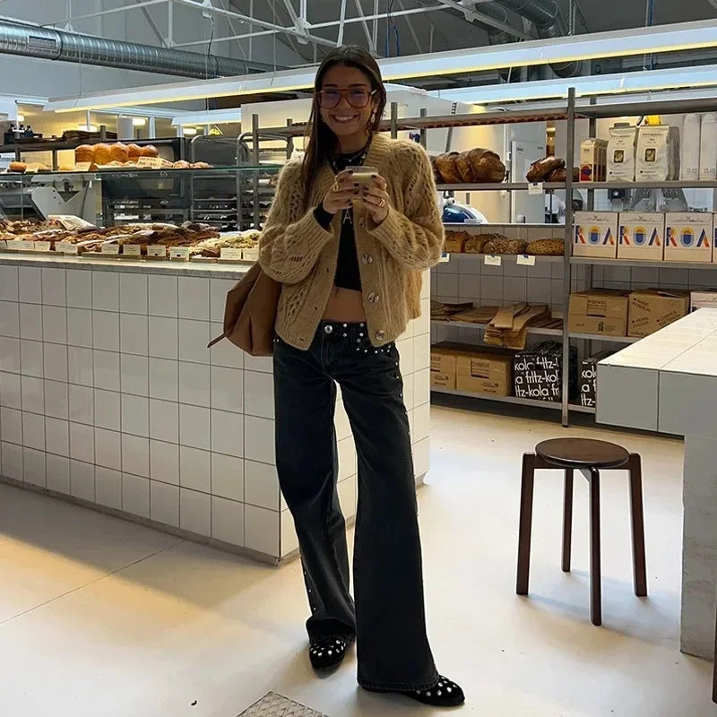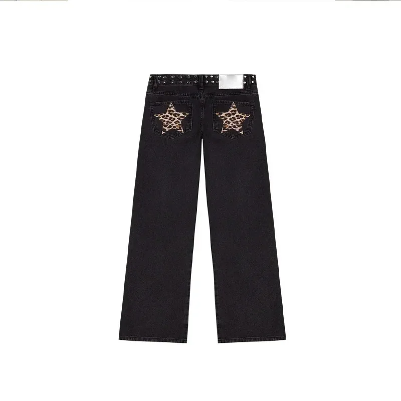 ONE DILEMMA Five-Pointed Star Print High Waited Jeans New Street Harajuku Baggy Jeans Women Clothing Casual Straight Denim Pants