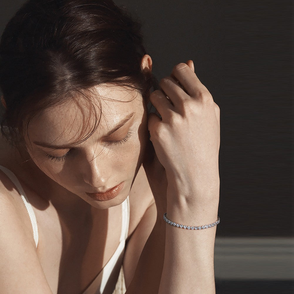 ORSA JEWELS Authentic 925 Sterling Silver Tennis Chain Bracelet Moulding Process Hanmade High-end Hand Chain for Man Woman SB128