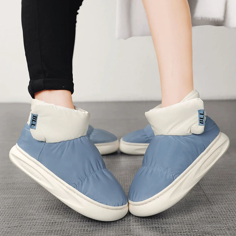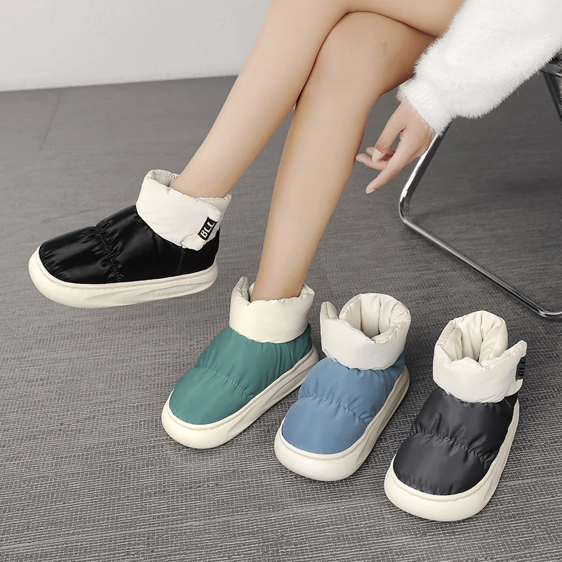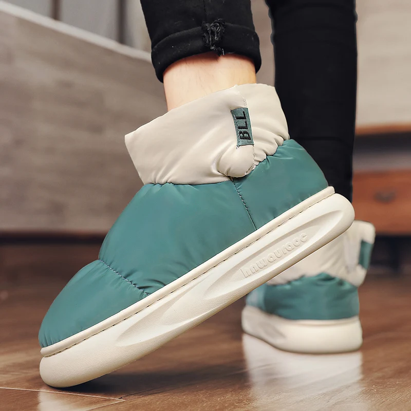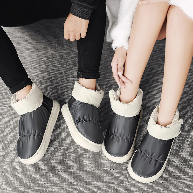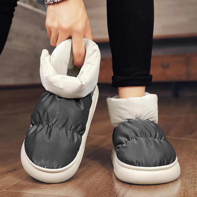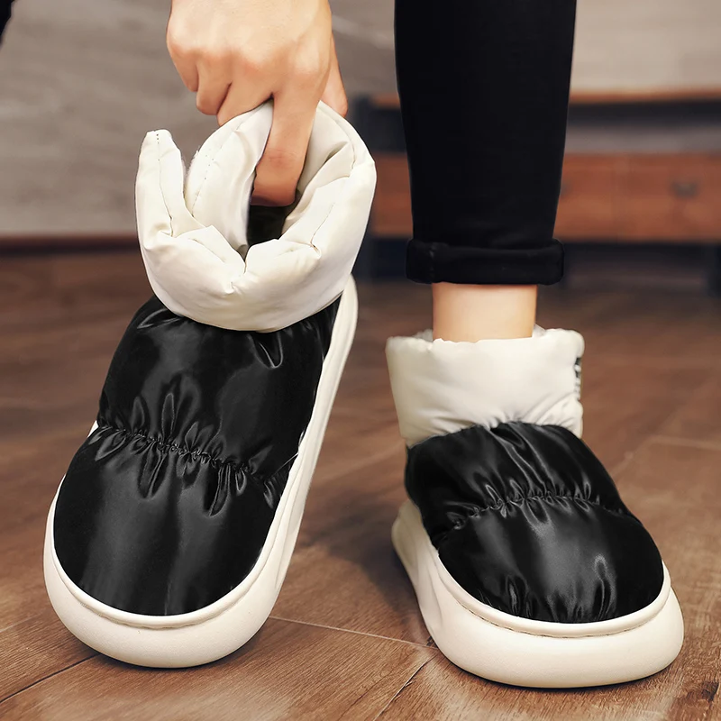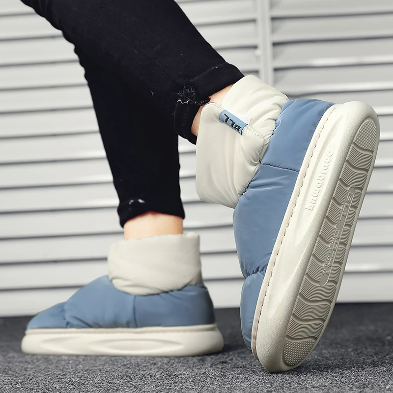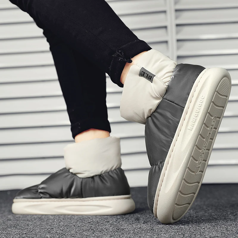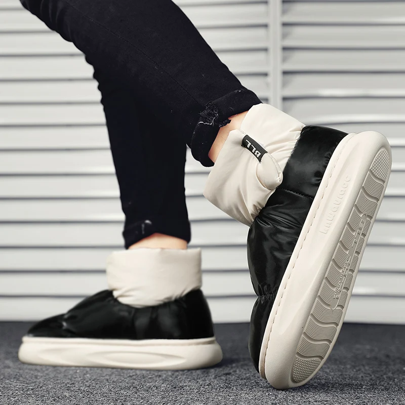 Outdoor Plush Warm Men's Snow Boots Winter Couple Cotton Shoes Down Non-Slip Waterproof Fashion Kids Shoes Slip on Soft Sneakers