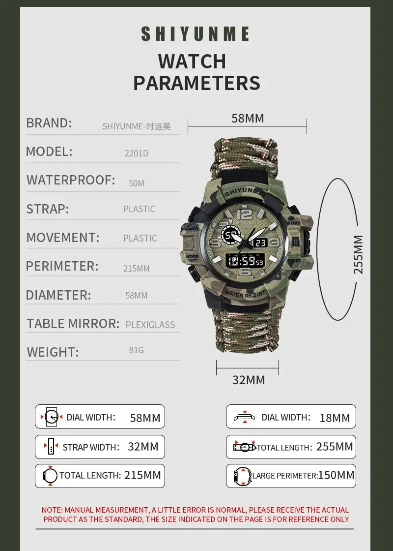 • Quartz Wristwatches :Powered by a quartz movement, this watch guarantees accurate timekeeping, making it a reliable tool for outdoor adventures.