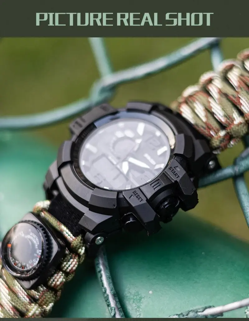 • Multifunctional Watch :This outdoor survival watch is not just a timepiece, but a versatile tool for camping, hiking, and other outdoor activities. It's packed with features that can come in handy in emergencies.