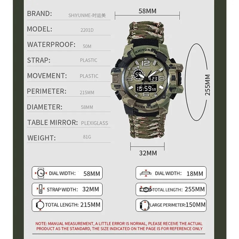 • Emergency Gear :This watch is not just a stylish accessory but an important piece of emergency gear that can save your life in challenging outdoor situations.