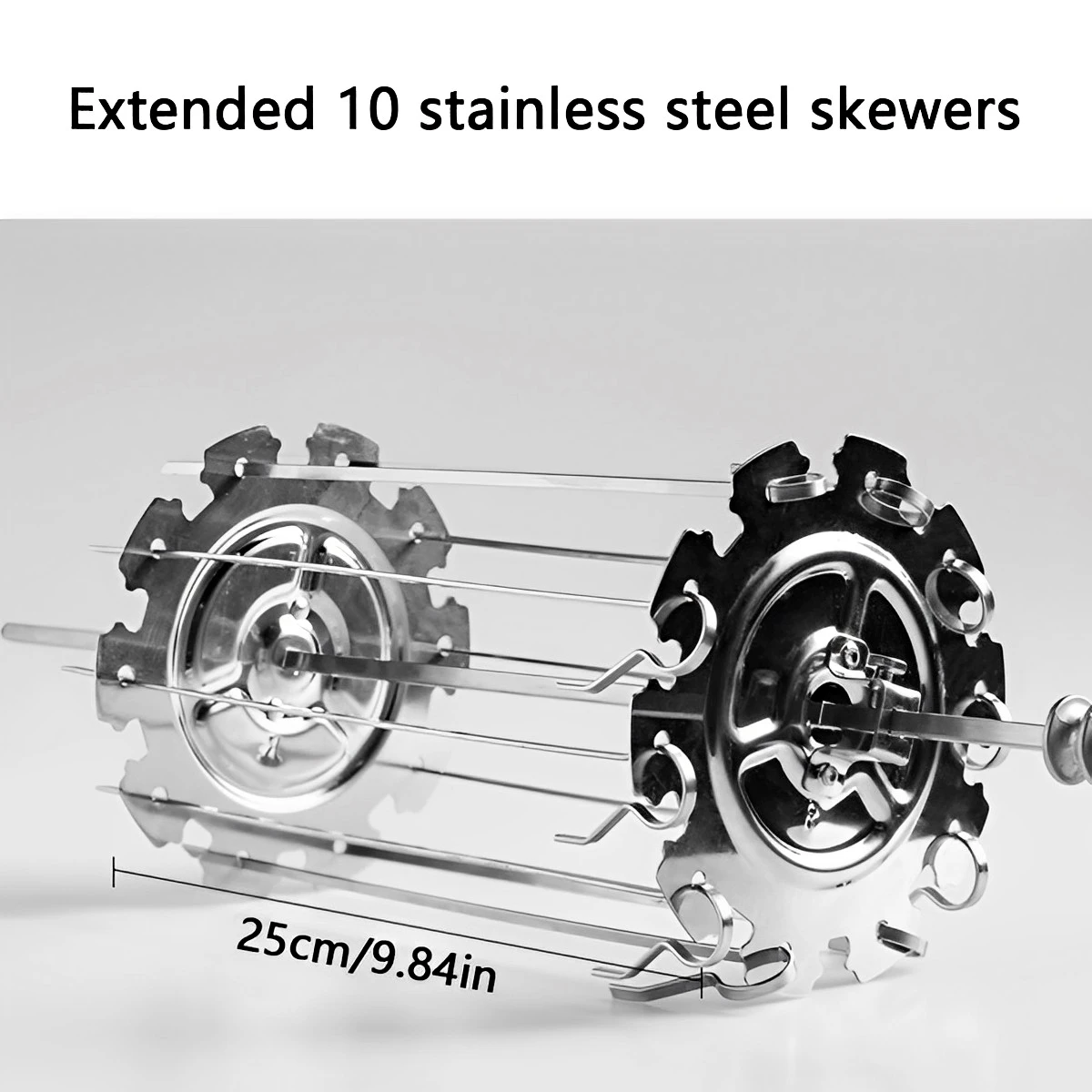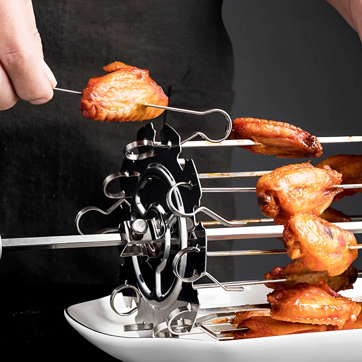 [What You Get] The package includes 2 fixed plates and 10 skewers. It is suitable for grilling meat, vegetables, chickens, fruits, beef, and more. Note that the electric oven must have a rotating grill, otherwise the grill cannot be used.