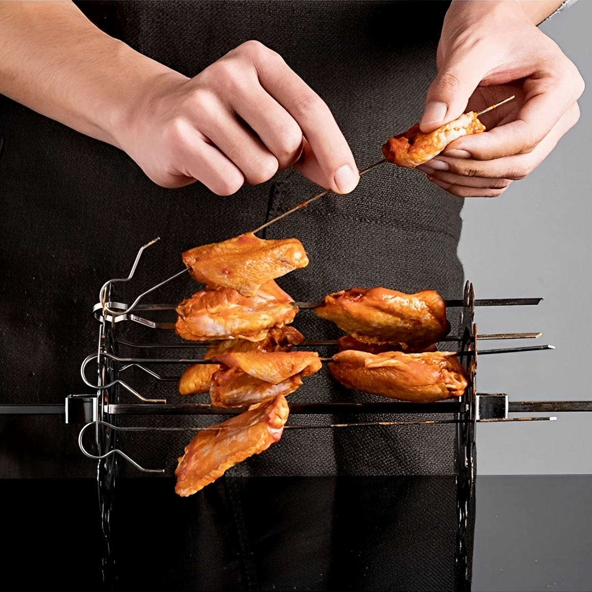 Oven Grill Cage Stainless Steel Meat Skewer Cage Heat-Resistant BBQ Roaster Non-Stick Kebab Maker Machine Meat Rotisserie Skewer