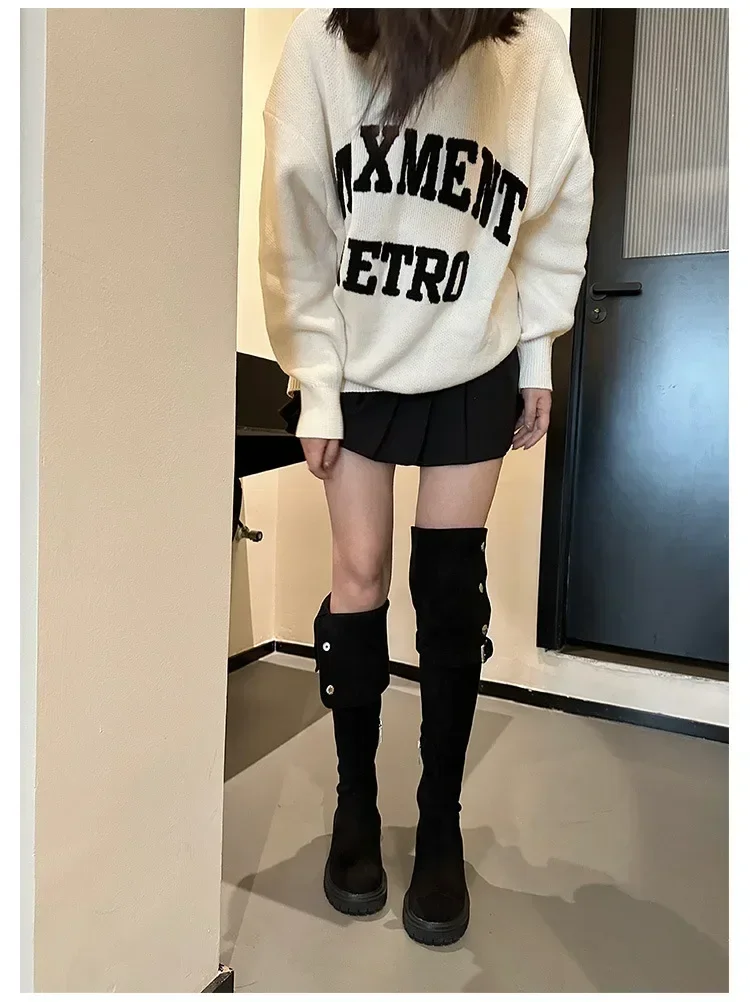 Over The Knee Cowboy Boots Women Designer Winter Platform Shoes Fashion Fur Suede Wedges Thigh High Boots Motorcycle Shoes 2024
