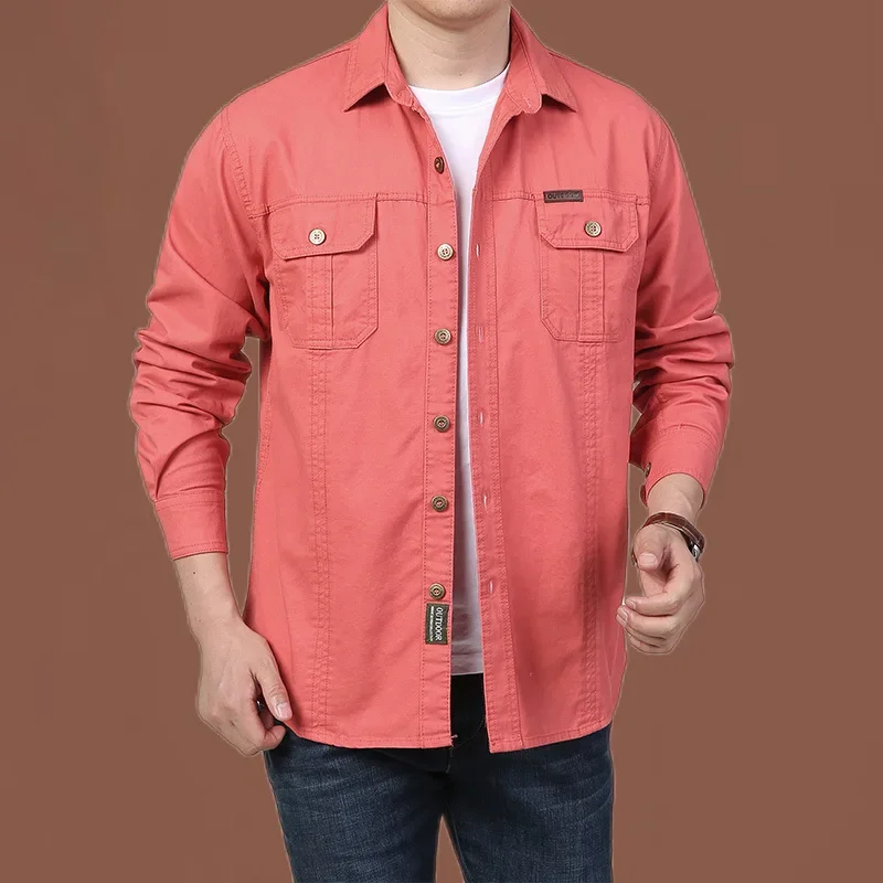 Oversized Shirts Men Long-Sleeve Formal Business Shirts Cargo Casual Shirts Slim Pocket Fashion Soild Shirt Male Brand Clothes