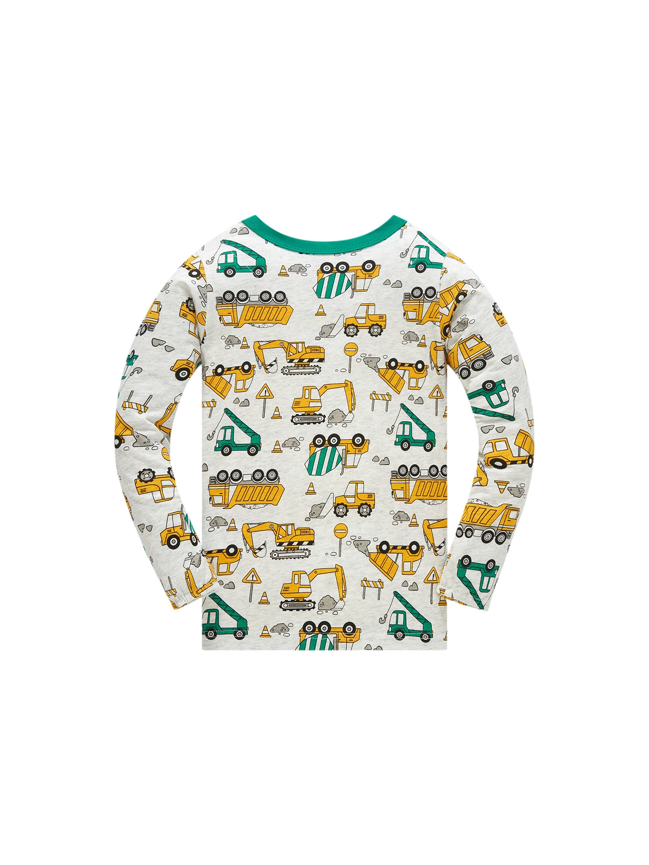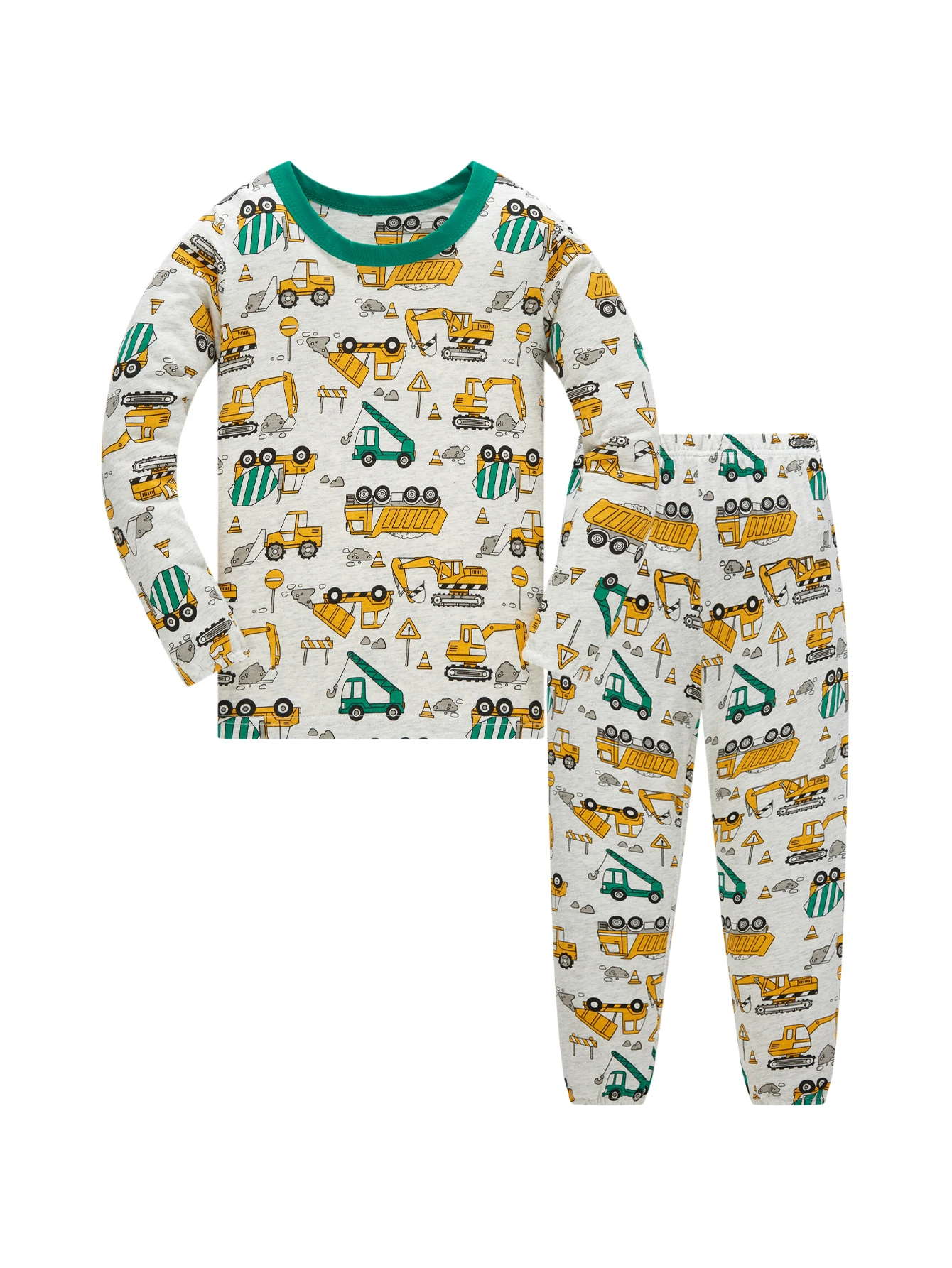 Pajamas Set for Boys 100% Cotton Full Print Excavator Kids Pjs Long Sleeve Elastic Cuffs Soft Sleepwear For Age 1-8 Years
