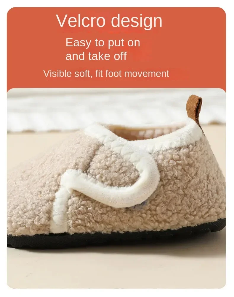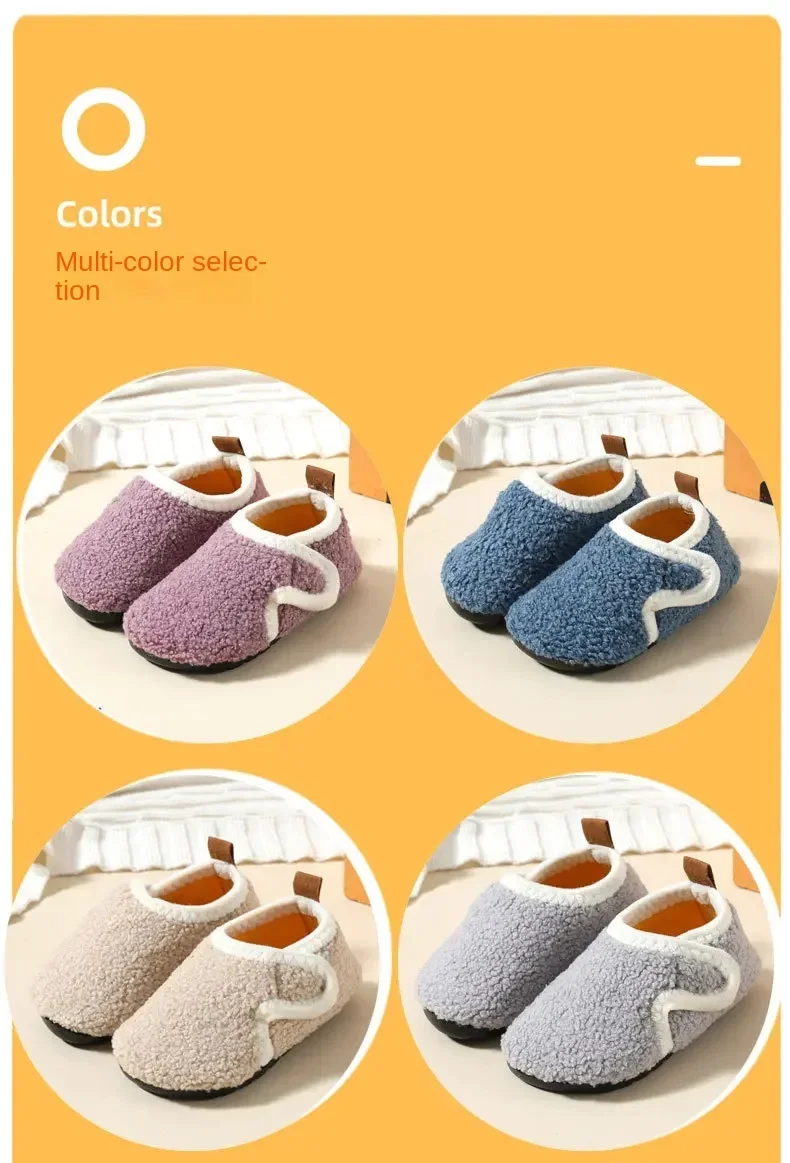 Pantuflas Child Cotton Slippers Solid Warm Kid Winter Home Shoe Boy Girl Plush Floor Shoe Indoor Soft Sole Anti-slip Cotton Shoe