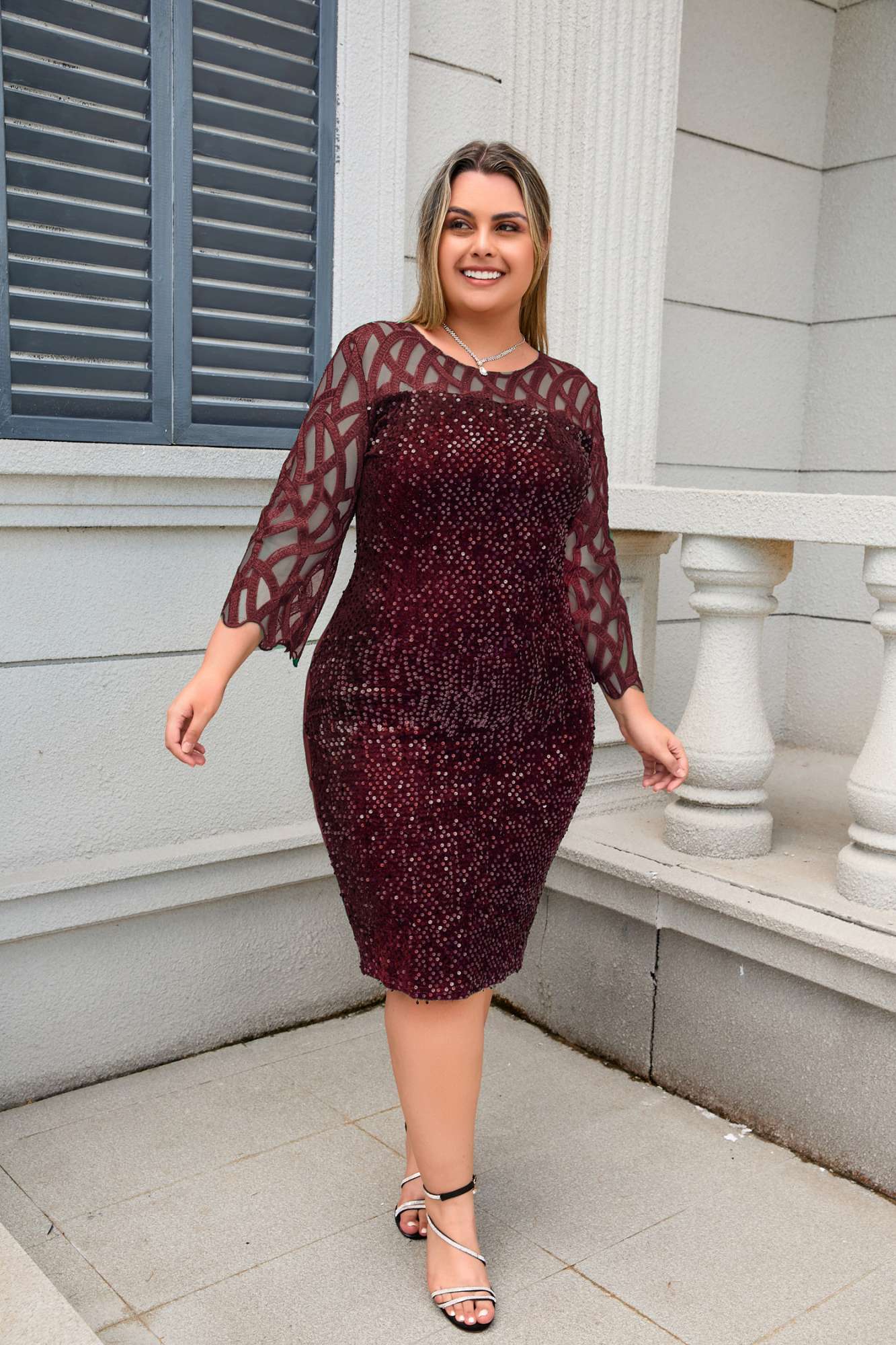 Party Dress Plus Size Ladies Midi Sequin Mesh Long Sleeve Lace Elegant Bodycon L-4XL 5XL Evening Dresses Woman Summer