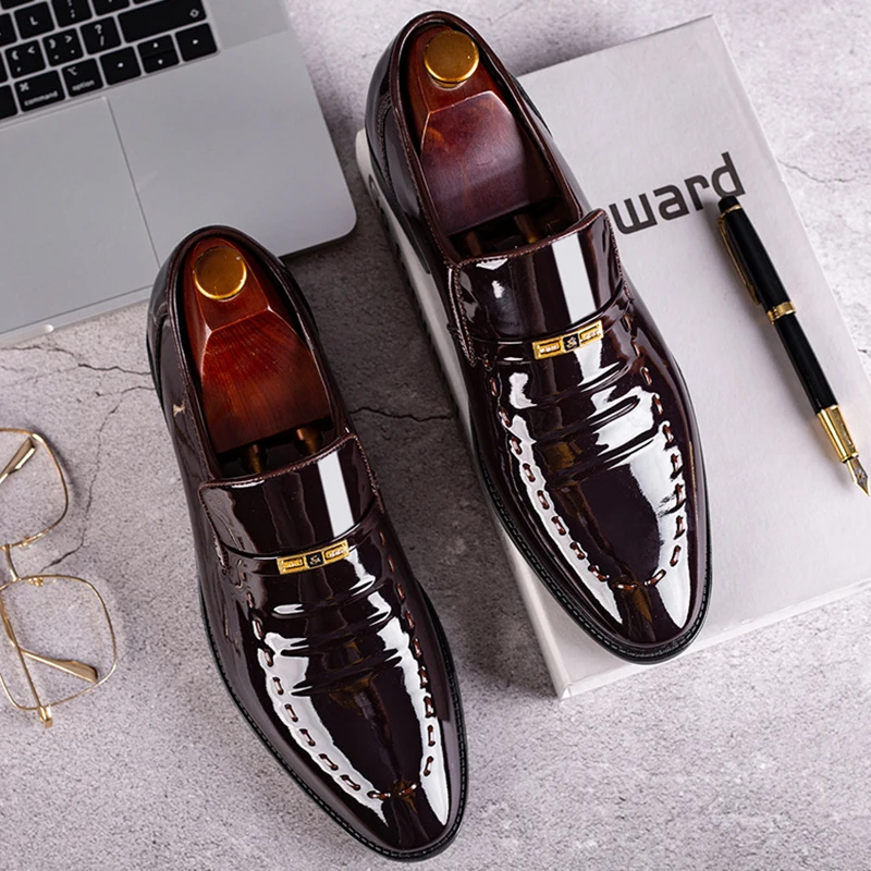 Patent Leather Men Shoes Slip On Oxfords for Male Wedding Party Office Work Shoes Plus Size Classic Business Casual Fashion Shoe