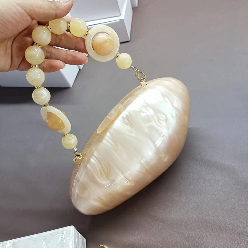 Pearl Acrylic Evening Bags Designer Luxury Clutch Purse Mini Women's Wallet Shell Chain Shoulder Crossbody Wedding Party Handbag