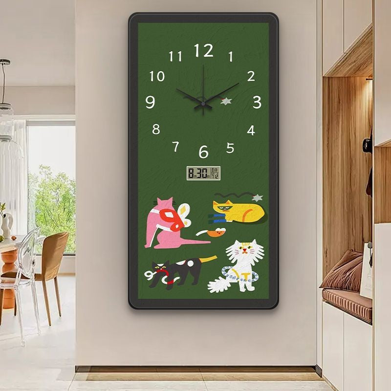 Perpetual calendar living room wall clock, French retro style, silent home electronic time clock, wall hanging painting