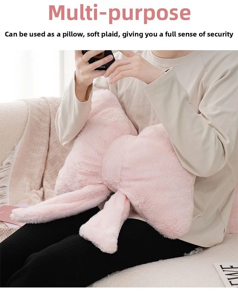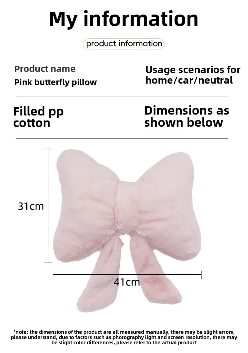 Pink bow ribbon couch pillow imitation rabbit fur comfortable car seat cushion ins style simple all-match back cushion