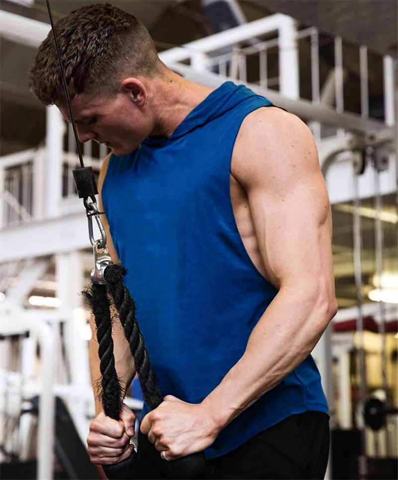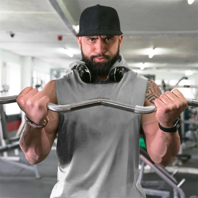 Plain Men's Gym Tank TopSinglets Bodybuilding Stringer Muscle Vest Hoodies Fitness Sleeveless Hooded T Shirt Cut Off Sports