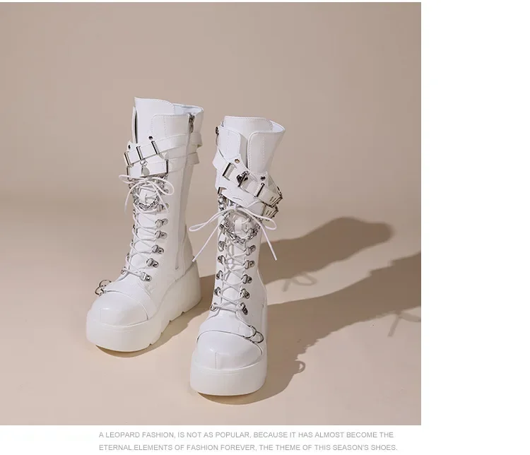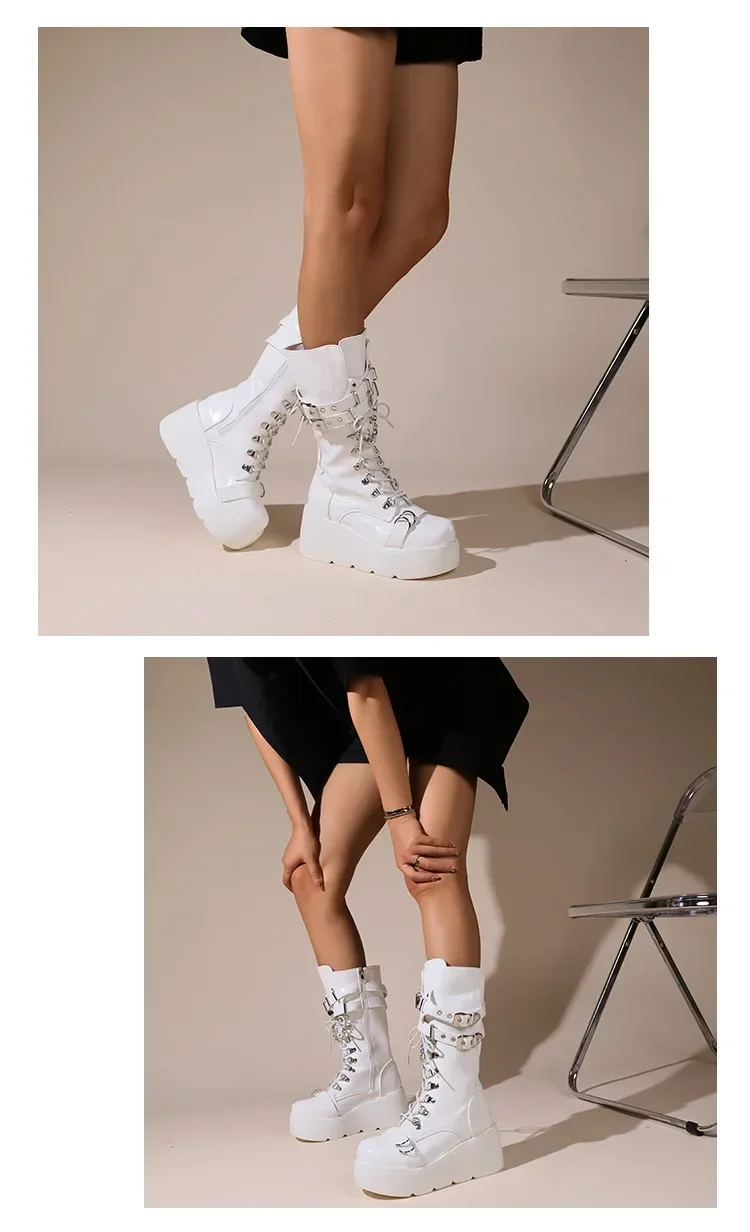 Platform Boots Riveted Buckle Wedges High Women's Boots Punk Spice Chic Biker Rider Boots