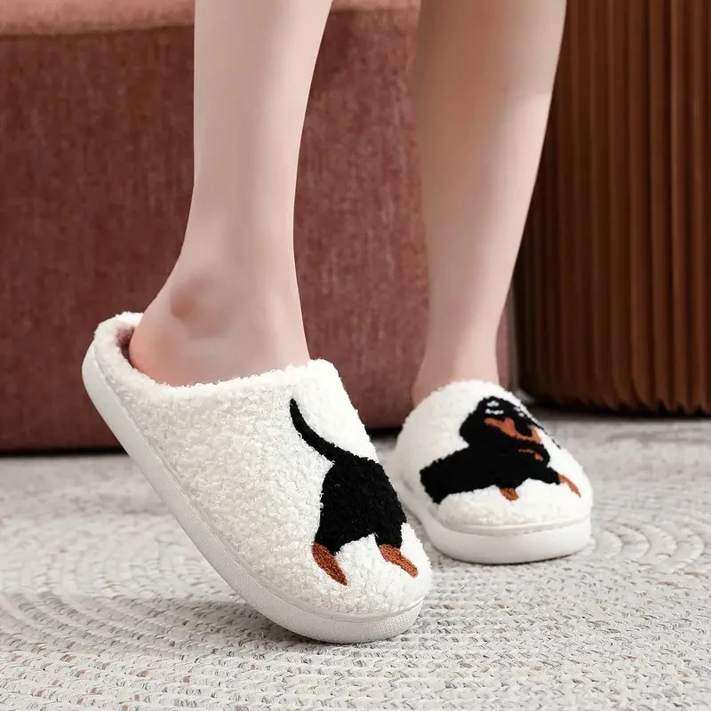 Platform Fluffy Slippers Women House Plush Cartoon Dog Designer Winter Shoes Girls Flats Home Fashion Casual Footwear Large Size