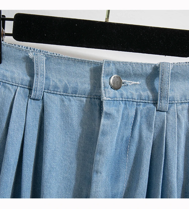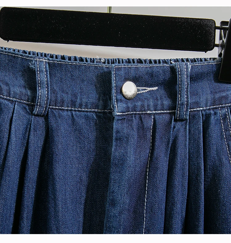 Plus Size Denim Skirt Women Summer 2025 New Korean Style High Waist A Line Pleated Long Jean Skirt Casual Women Maxi Skirt