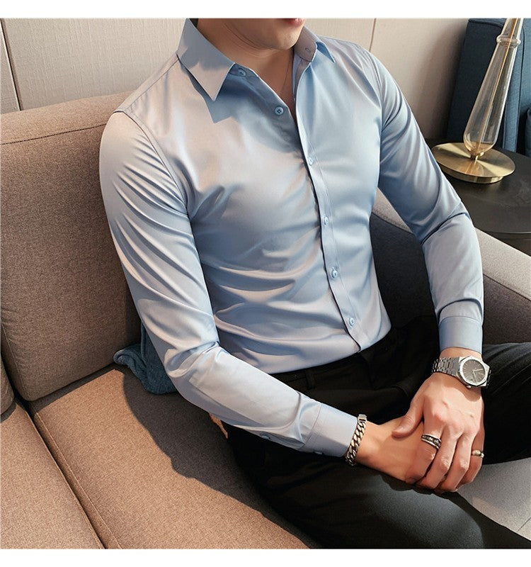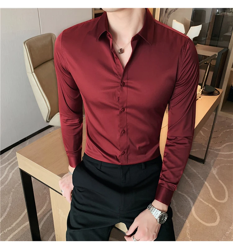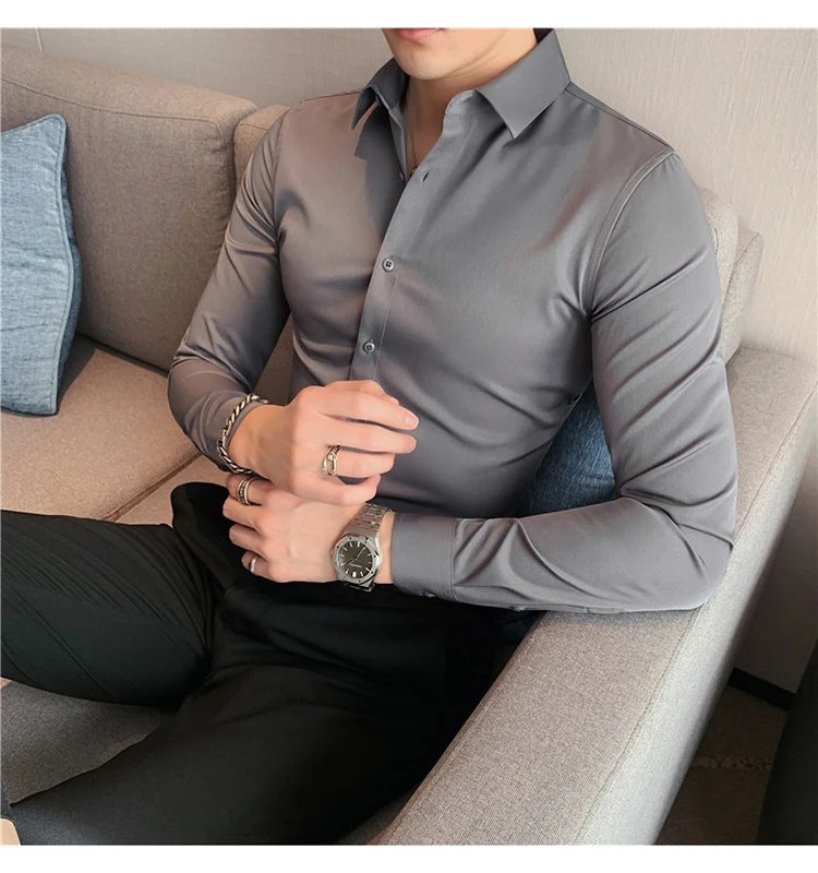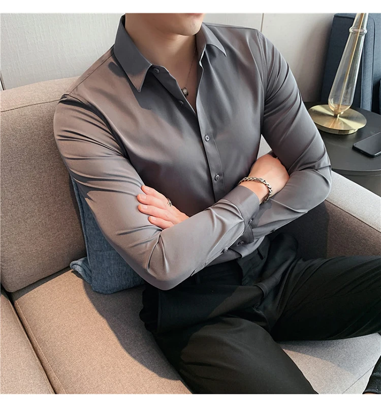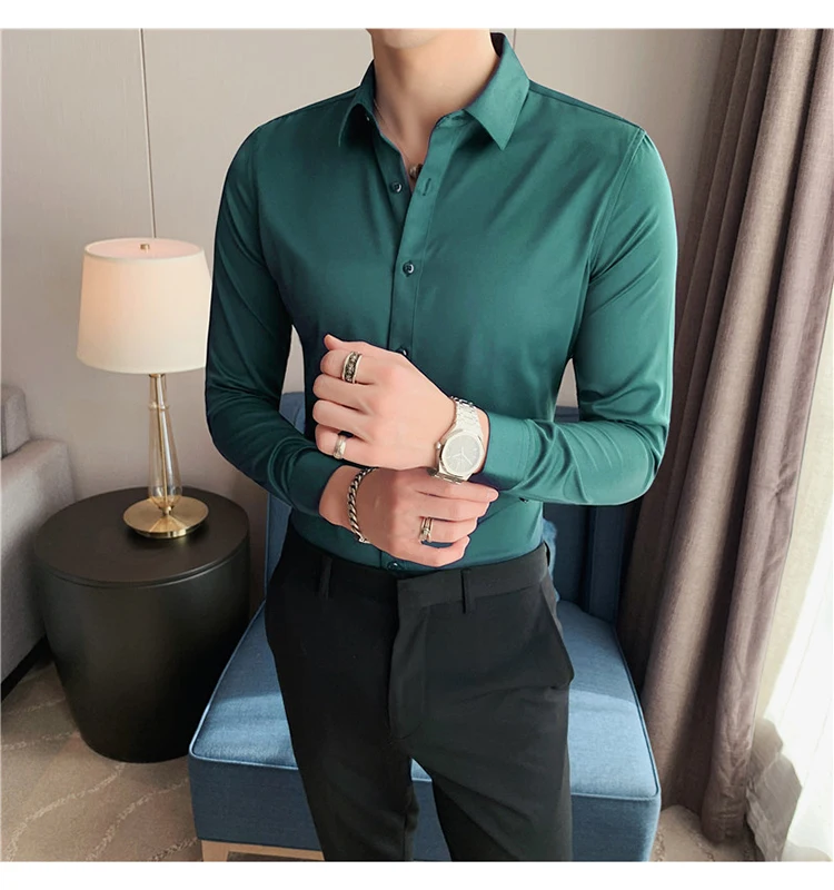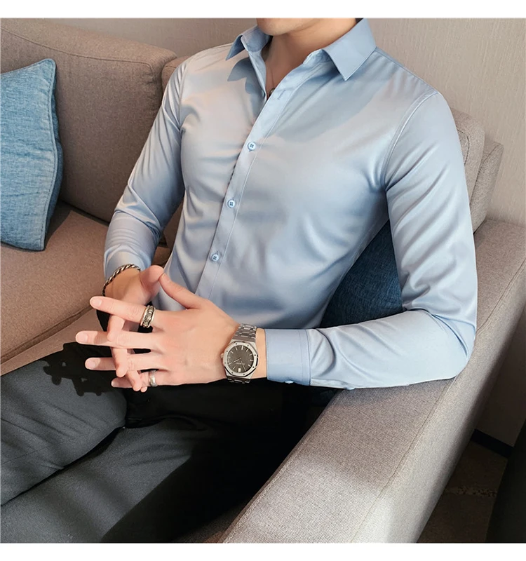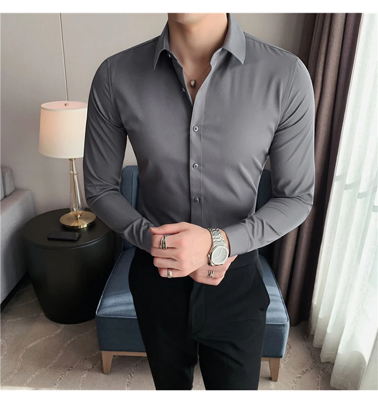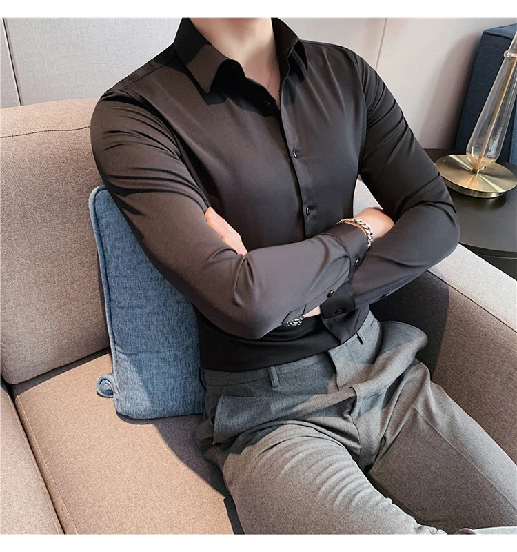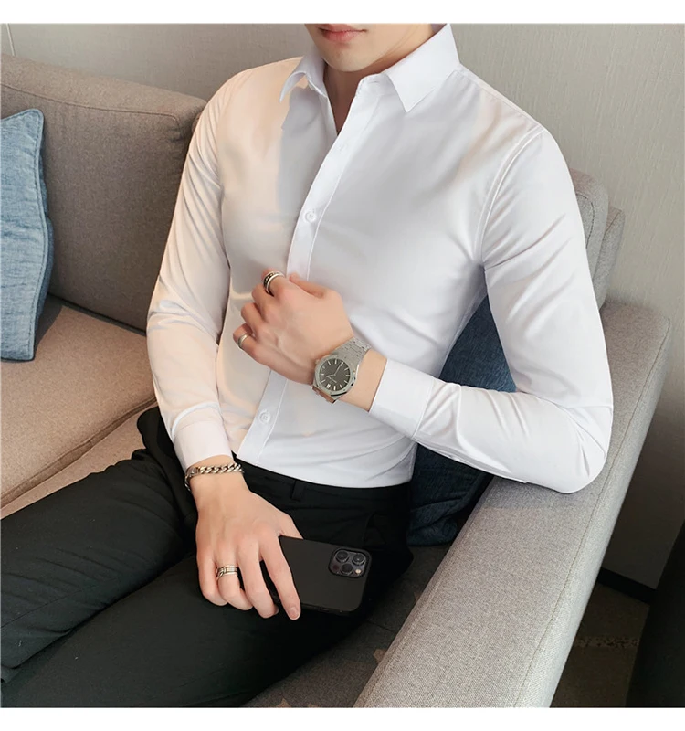 Plus Size S-7XL High Quality Men Dress Shirt 2024 Autumn Long Sleeve Solid Business Slim Shirts Homme Dress Social Casual Shirt