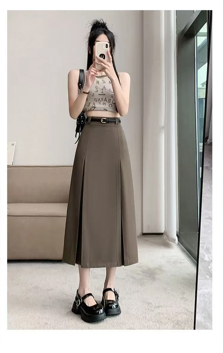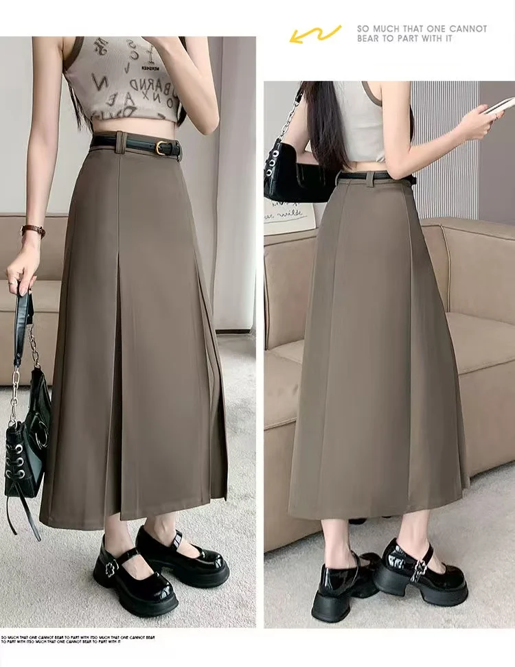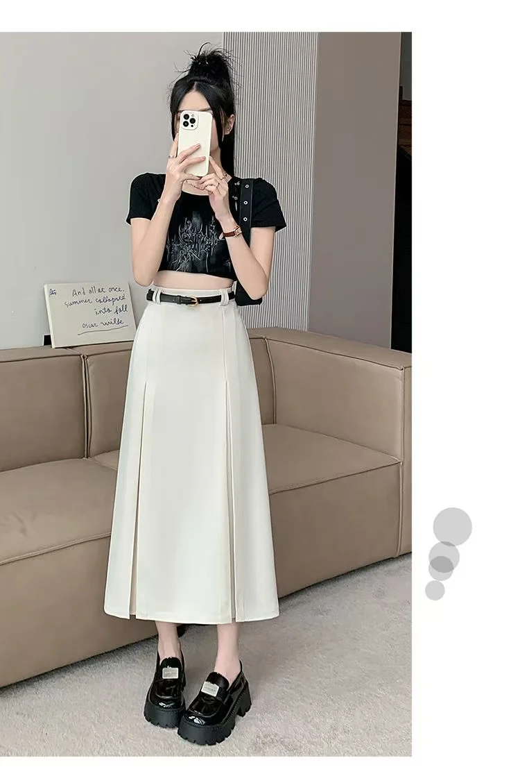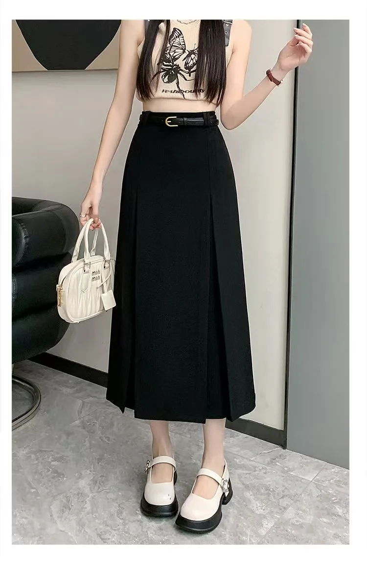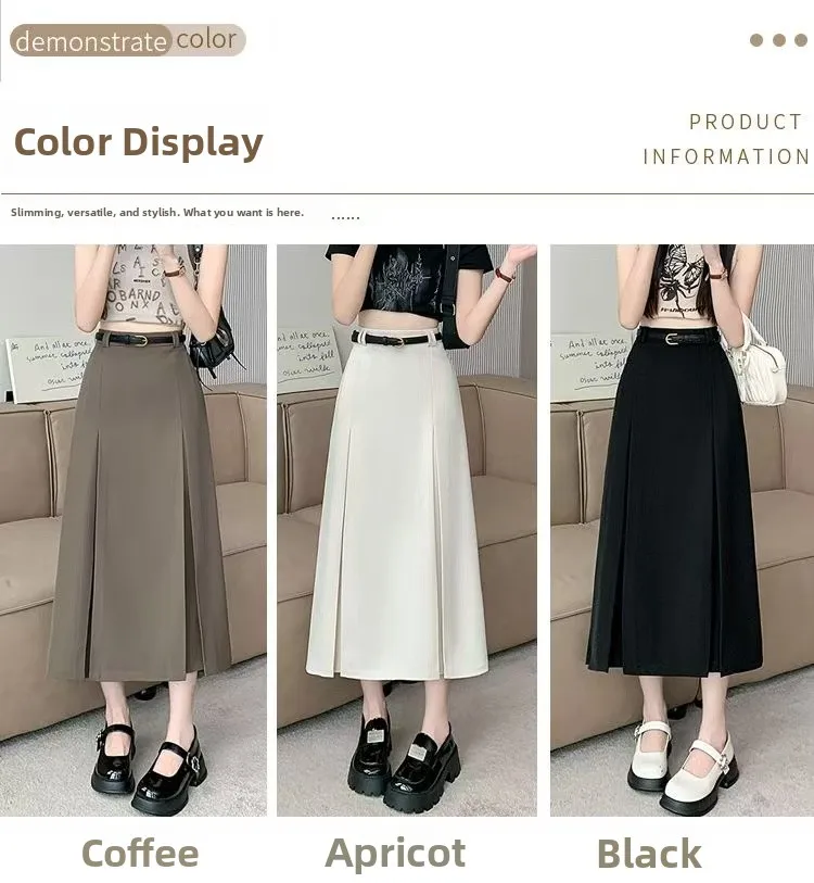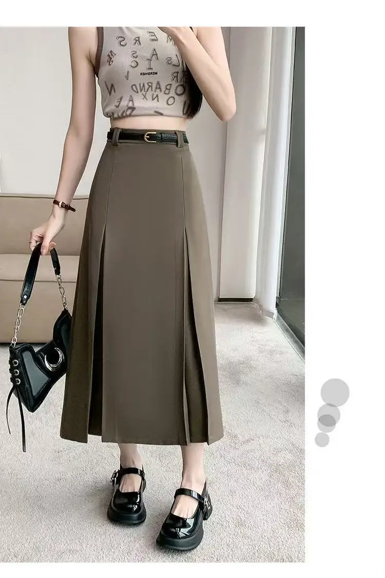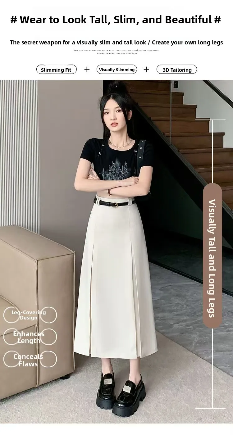 plus Size Suit Skirt Women Summer New Elastic High Waist Slim A-Line Skirt Belly Cover Pleated Skirt Korean Sle Casual Wear