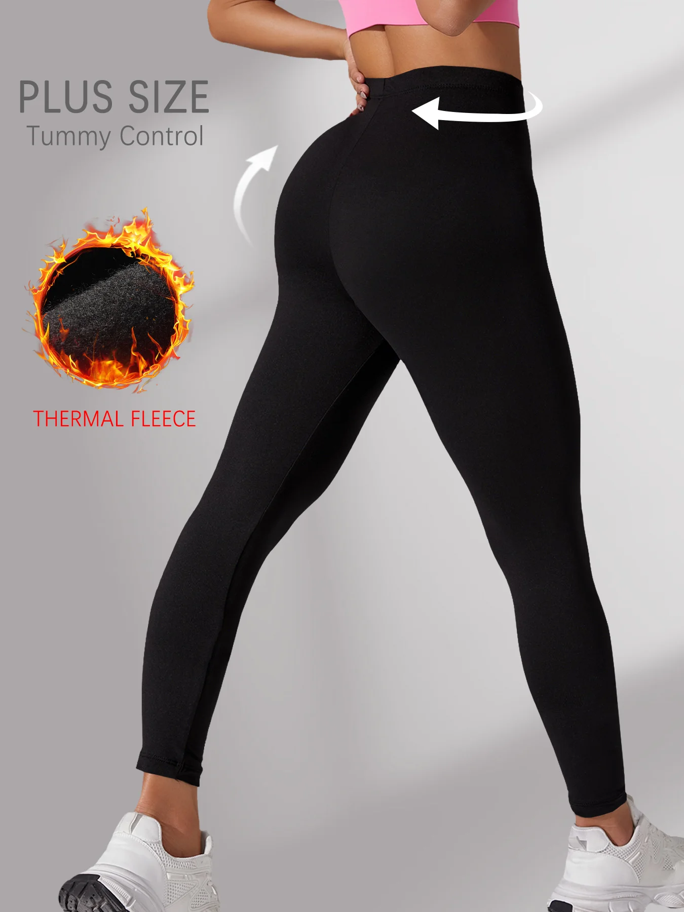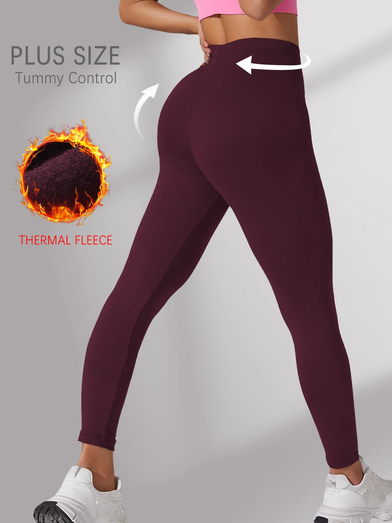 Plus Size Super Soft Fleece Lined Leggings Women, Workout Yoga Running Thermal Warm Pants For cold winter Running